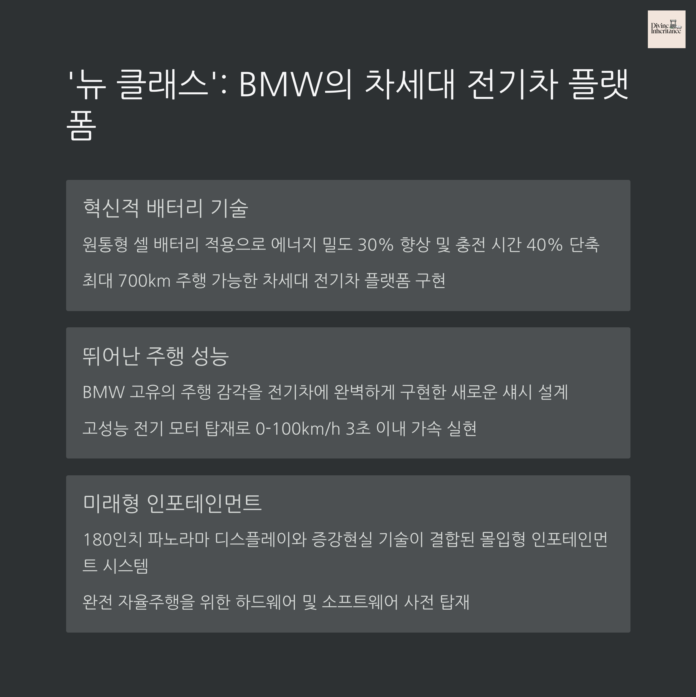 BMW가 헝가리 공장을 전략적 거점으로 삼은 또 하나의 중요한 이유는, 바로 차세대 전기차 플랫폼인 '뉴 클래스(New Class)'의 본격 생산지로 선정되었기 때문이다. 뉴 클래스는 기존 전기차 라인업과 차별화된 새로운 구조와 디자인 철학을 바탕으로 개발되고 있으며, BMW의 미래를 이끌 주력 모델로 기대받고 있다.