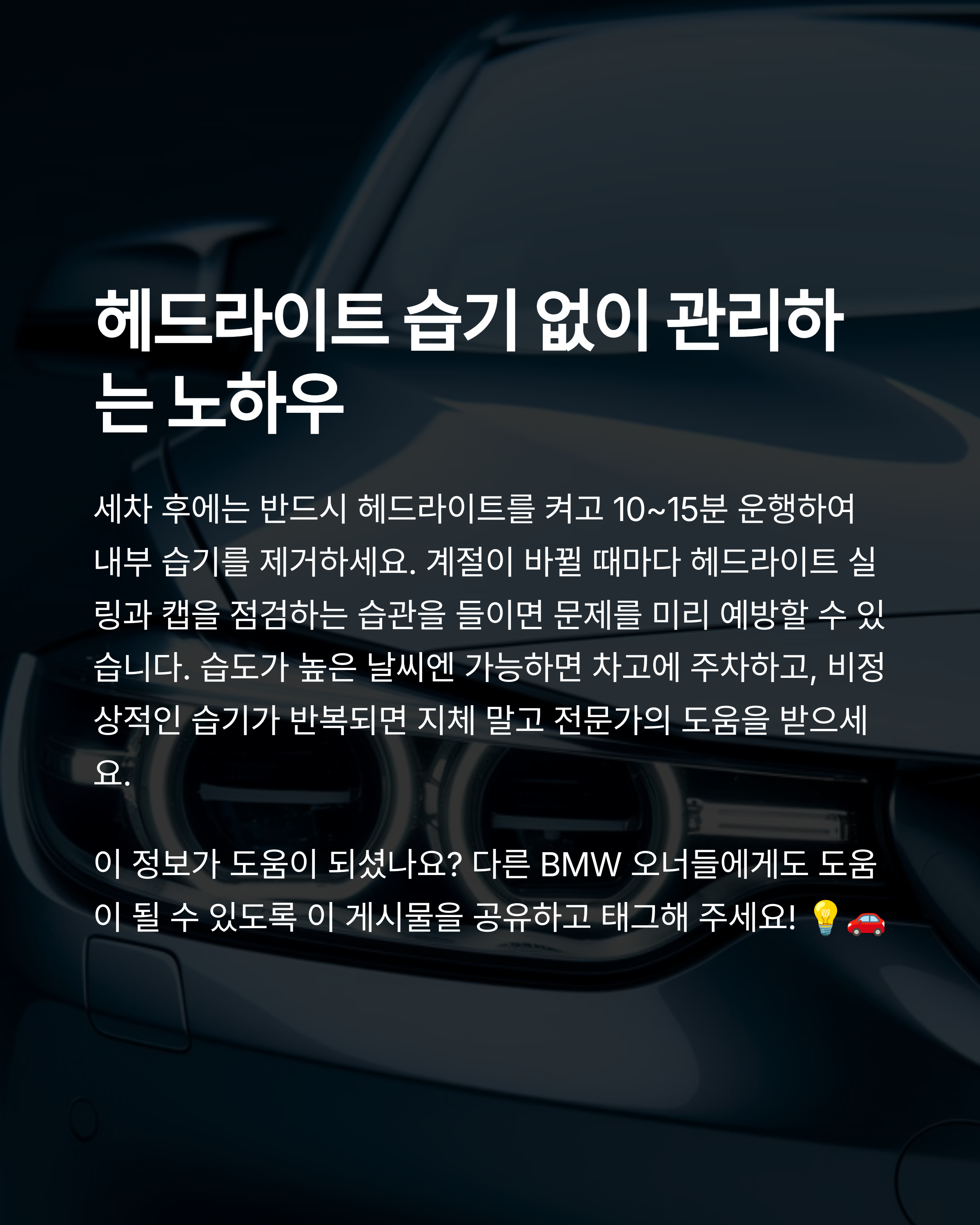 오늘은 BMW 차량의 헤드라이트 습기 문제의 원인과 해결법을