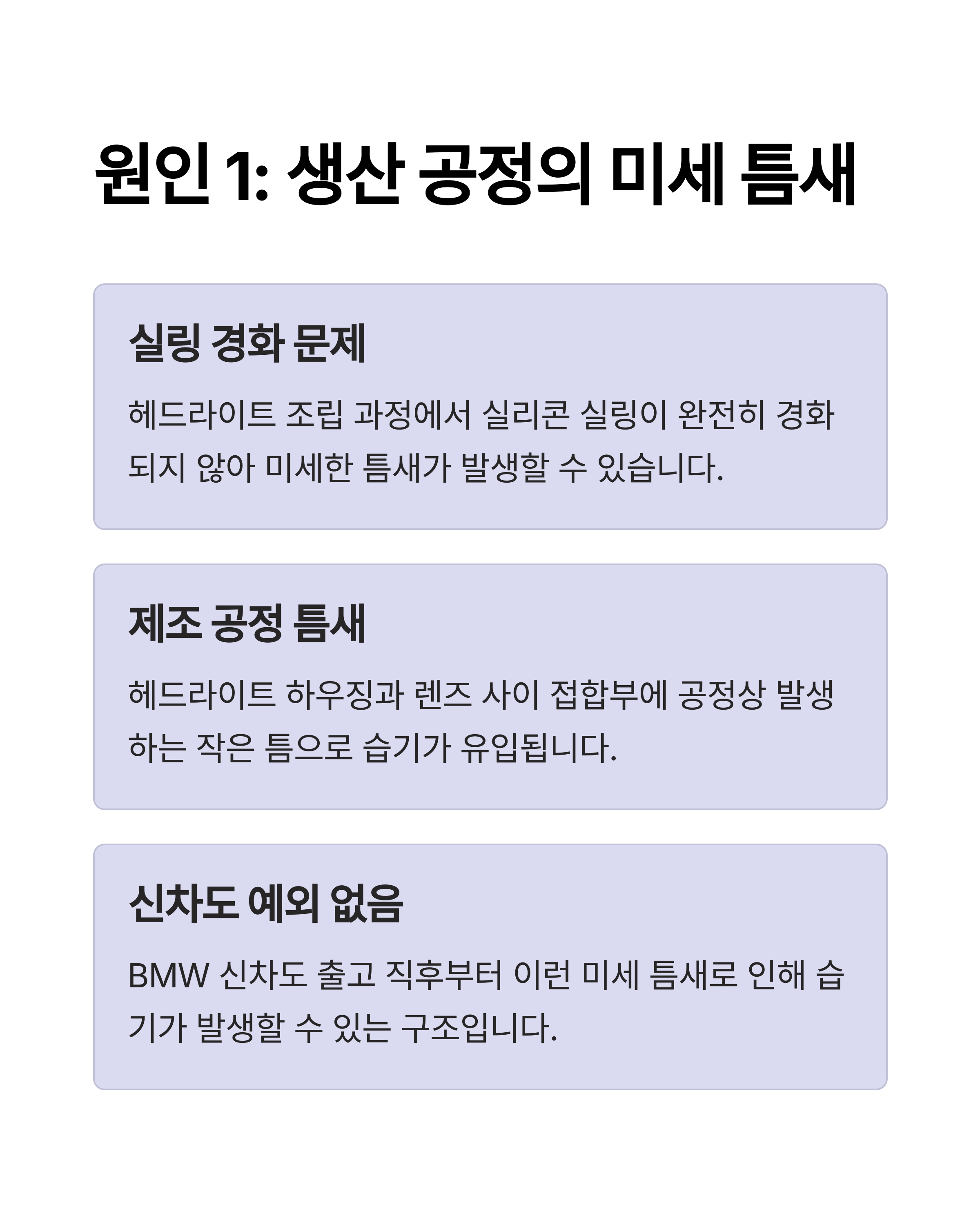 "새차를 뽑은 지 한 달도 안 됐는데, 헤드라이트 안에 습기가 차 있어요"