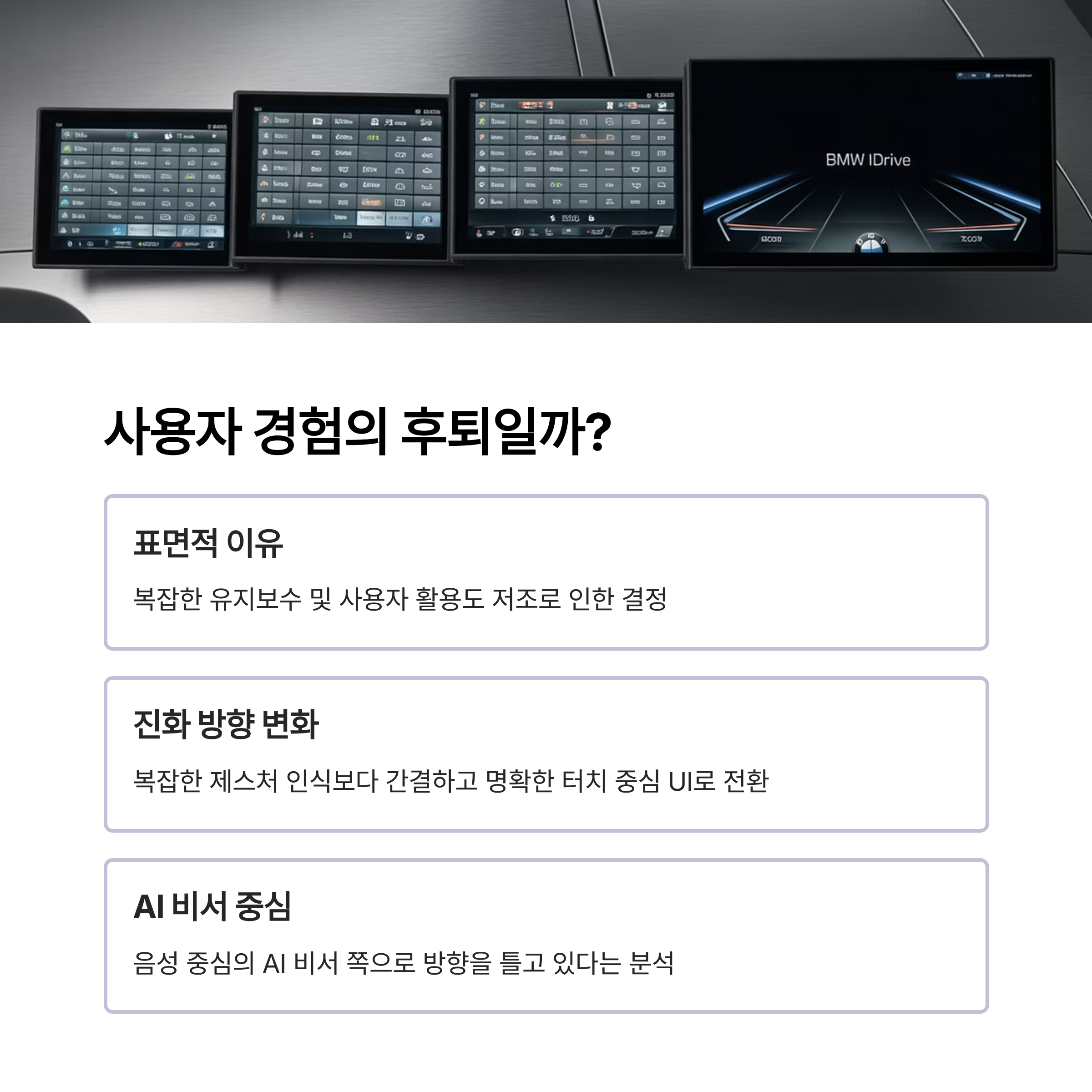 이번 옵션 삭제는 단순한 기능 축소 그 이상의 의미를 지니고 있으며, BMW의 인터페이스 전략 변화와 직결되는 이슈로 업계의 이목이 집중되고 있습니다.