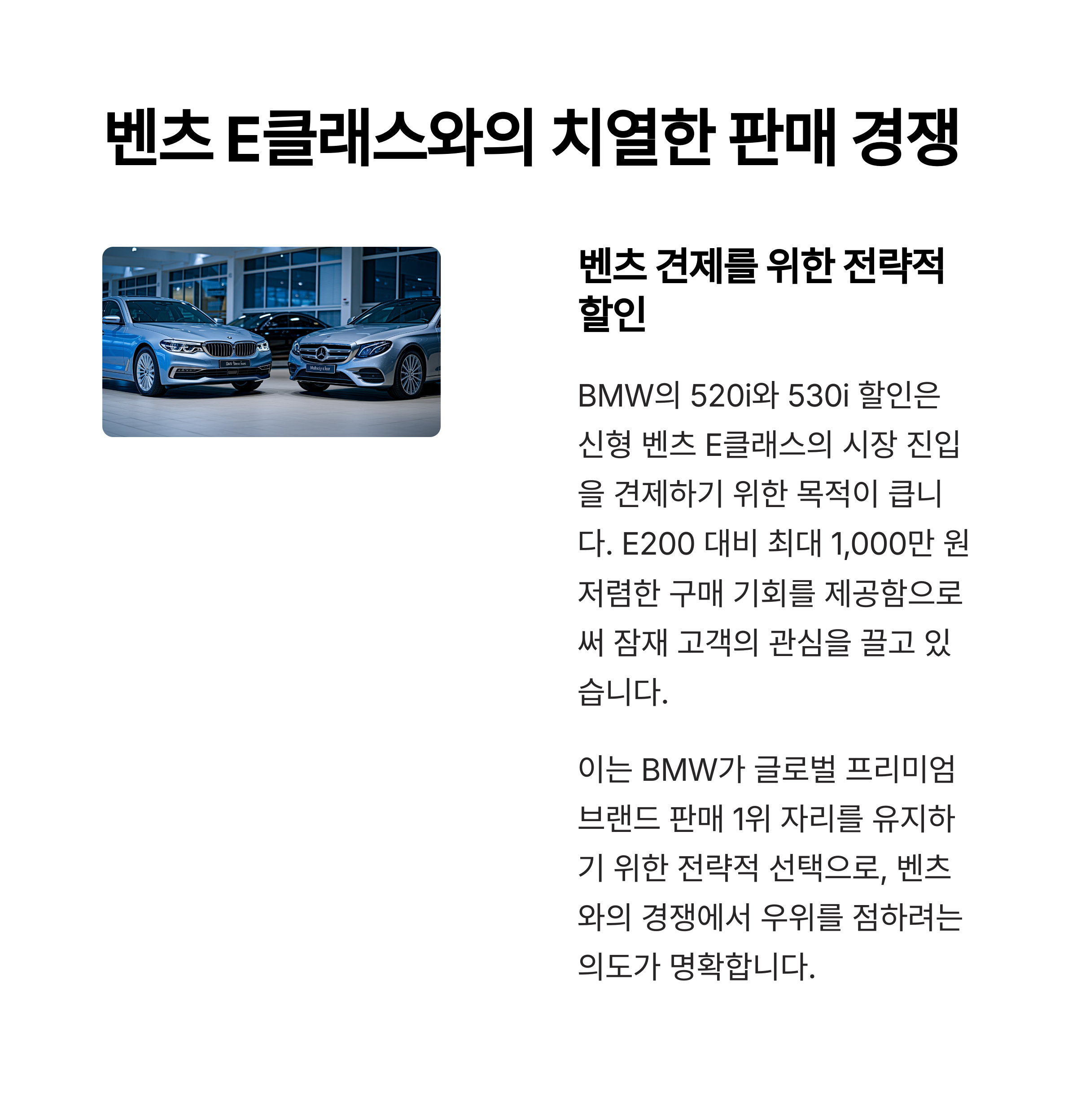 특히 벤츠 E클래스와 같은 경쟁 차종이 가격 유지에 집중하는 반면,