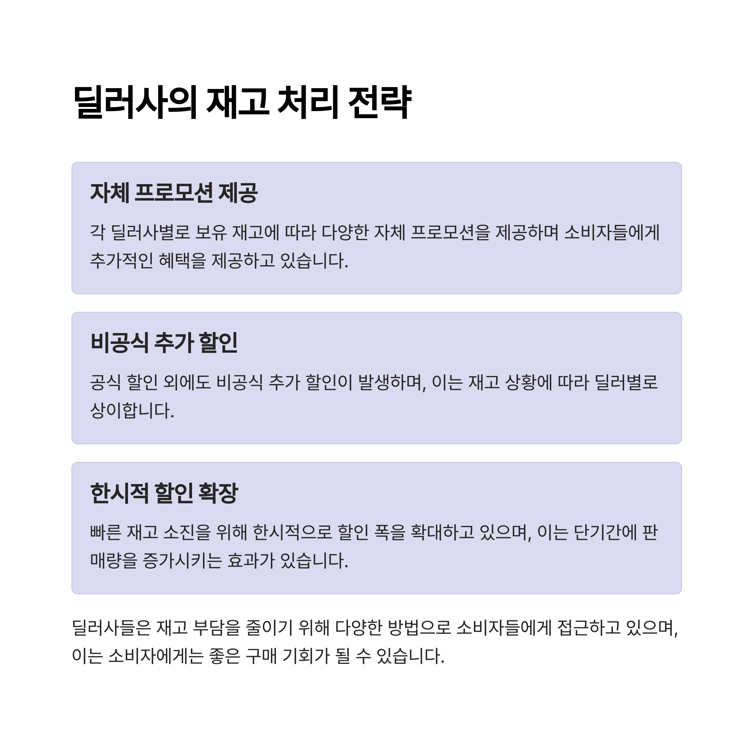 하지만 차량 모델 변경 시기, 신형 출시 여부, 딜러 재고 현황 등을