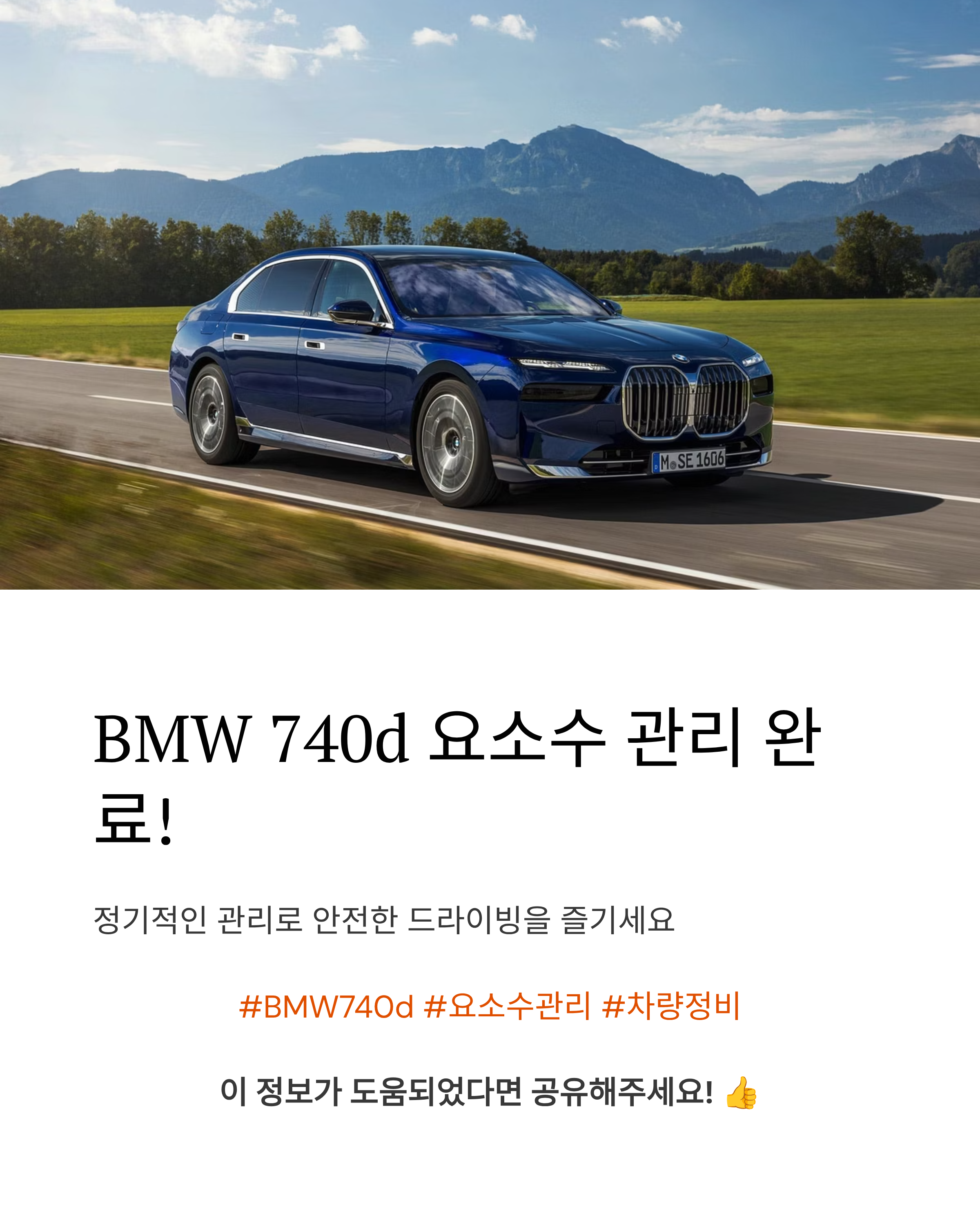 BMW 740d를 타는 분들이라면 요소수 관리도 중요한 정비 포인트 중 하나입니다.