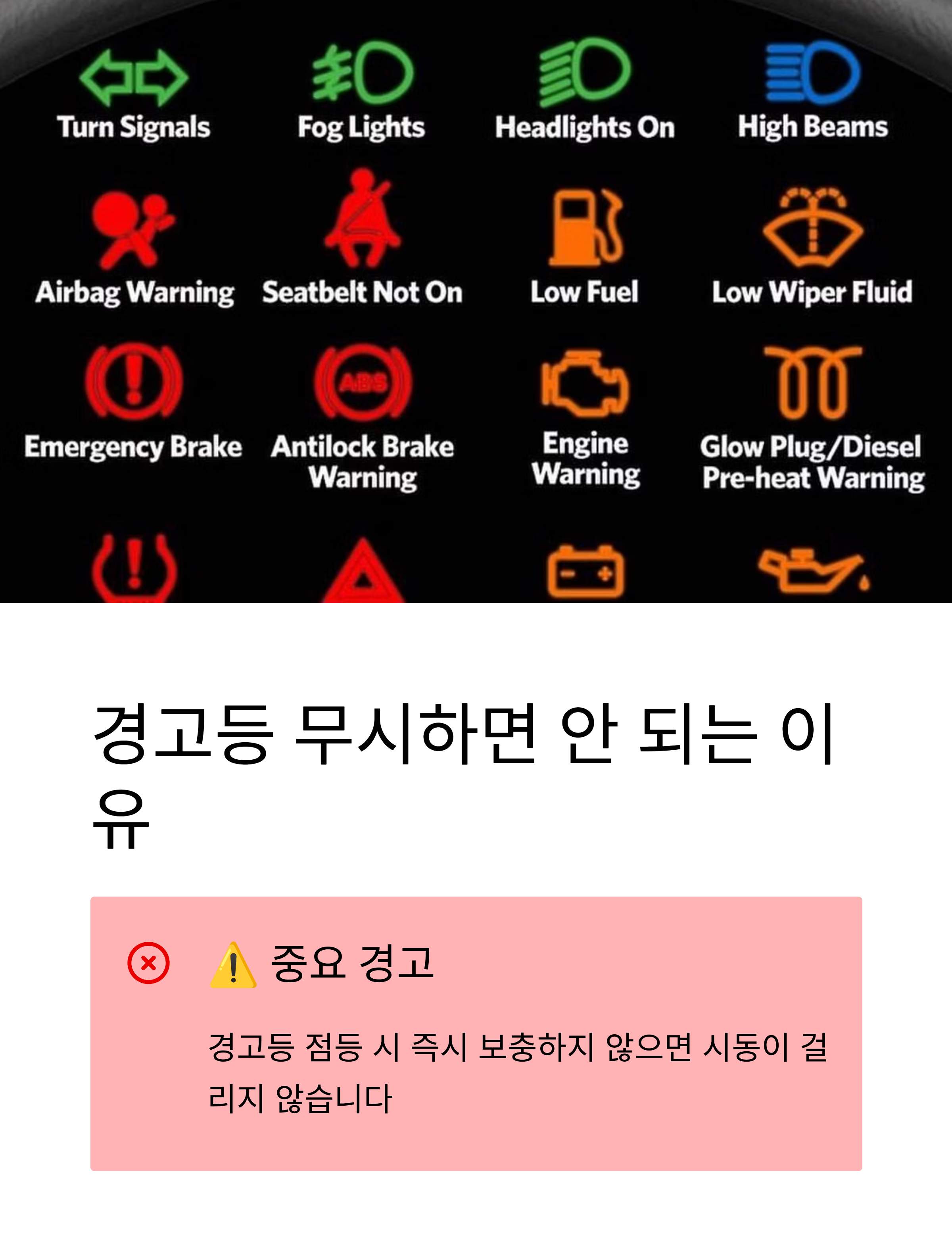 특히 경고등 점등 시 대처 방법이나 비용까지 알려드리니, 지금 바로 확인해보세요.