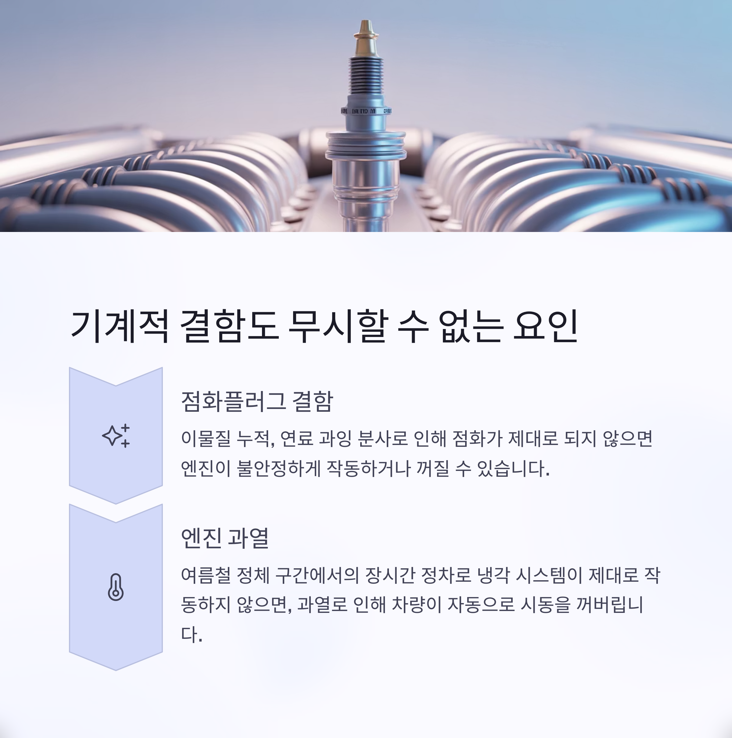 엔진 과열도 주요 원인 중 하나입니다. 여름철 정체 구간에서의 장시간