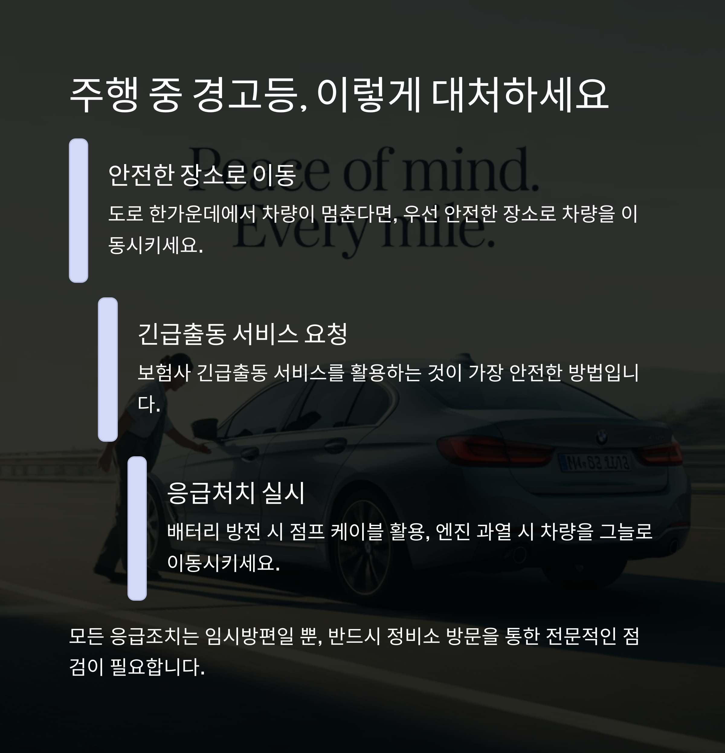 다만, 이 모든 조치는 '응급처치'일 뿐, 반드시 정비소 방문을
