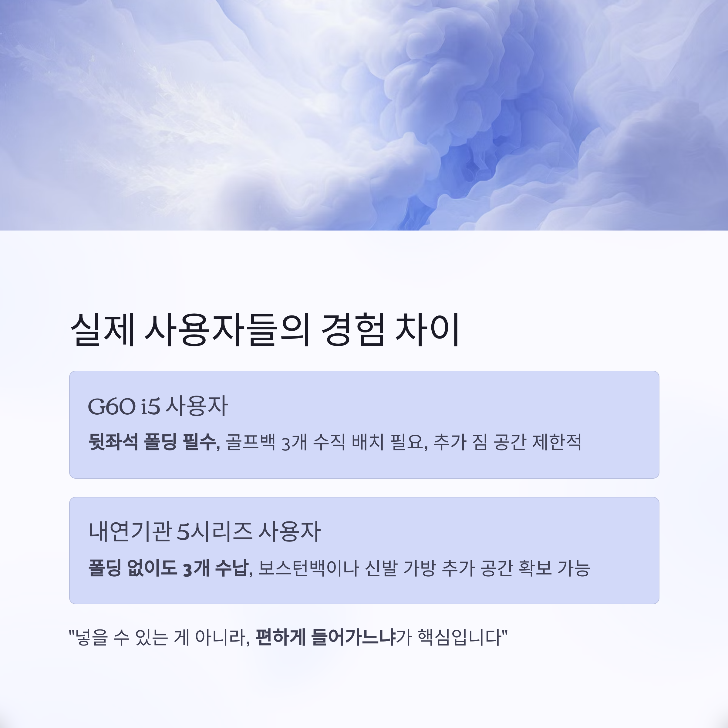 실사용자의 한 줄 평: "넣을 수 있는 게 아니라, 편하게 들어가느냐가 핵심"