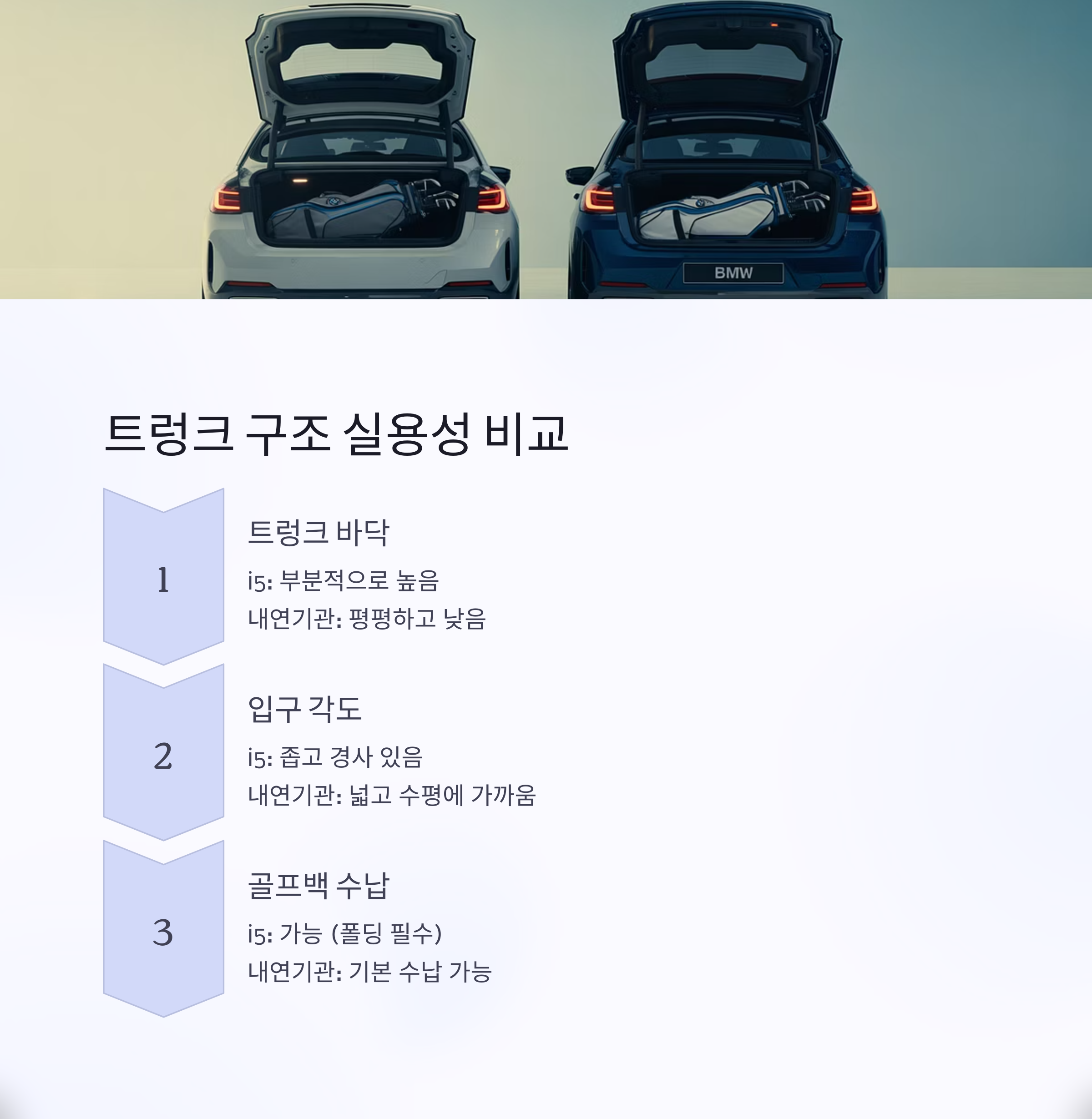 골프백 3개 수납 가능? 전기 vs 내연기관 5시리즈