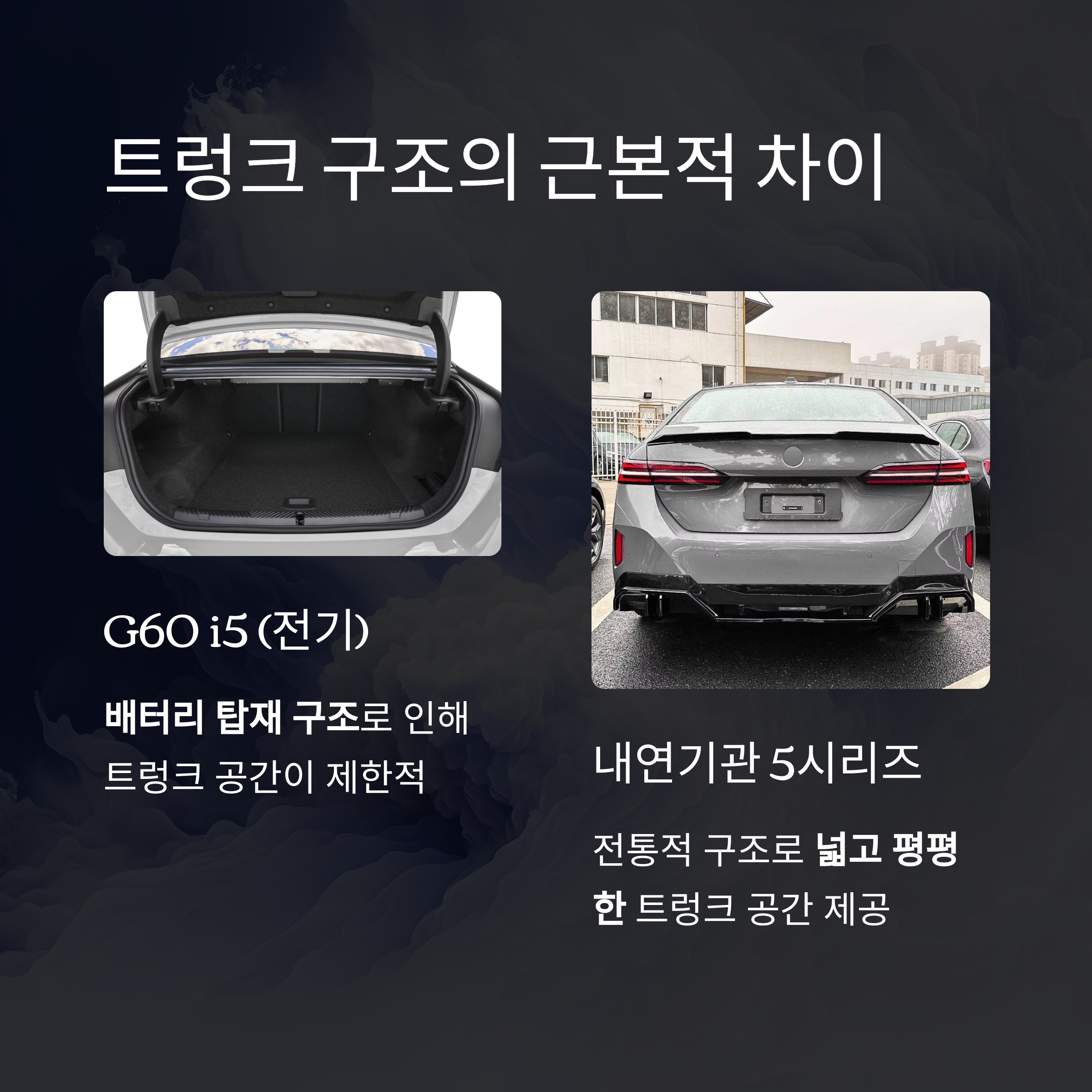 이번 글에서는 G60 i5와 내연기관 5시리즈의 트렁크에