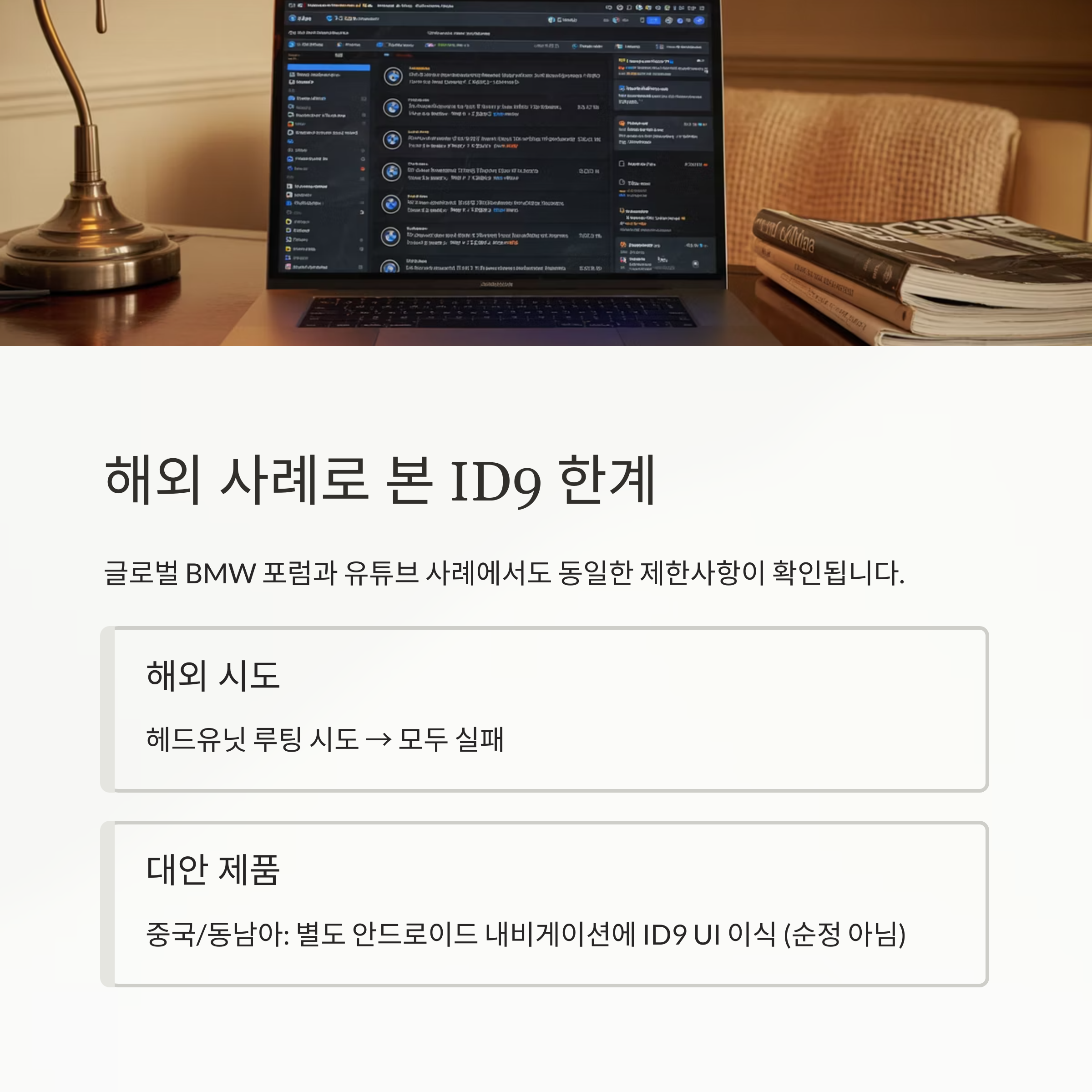 해외 BMW 포럼과 유튜브 사례를 살펴보면 대부분 동일한 제한 사항을 겪고 있습니다.