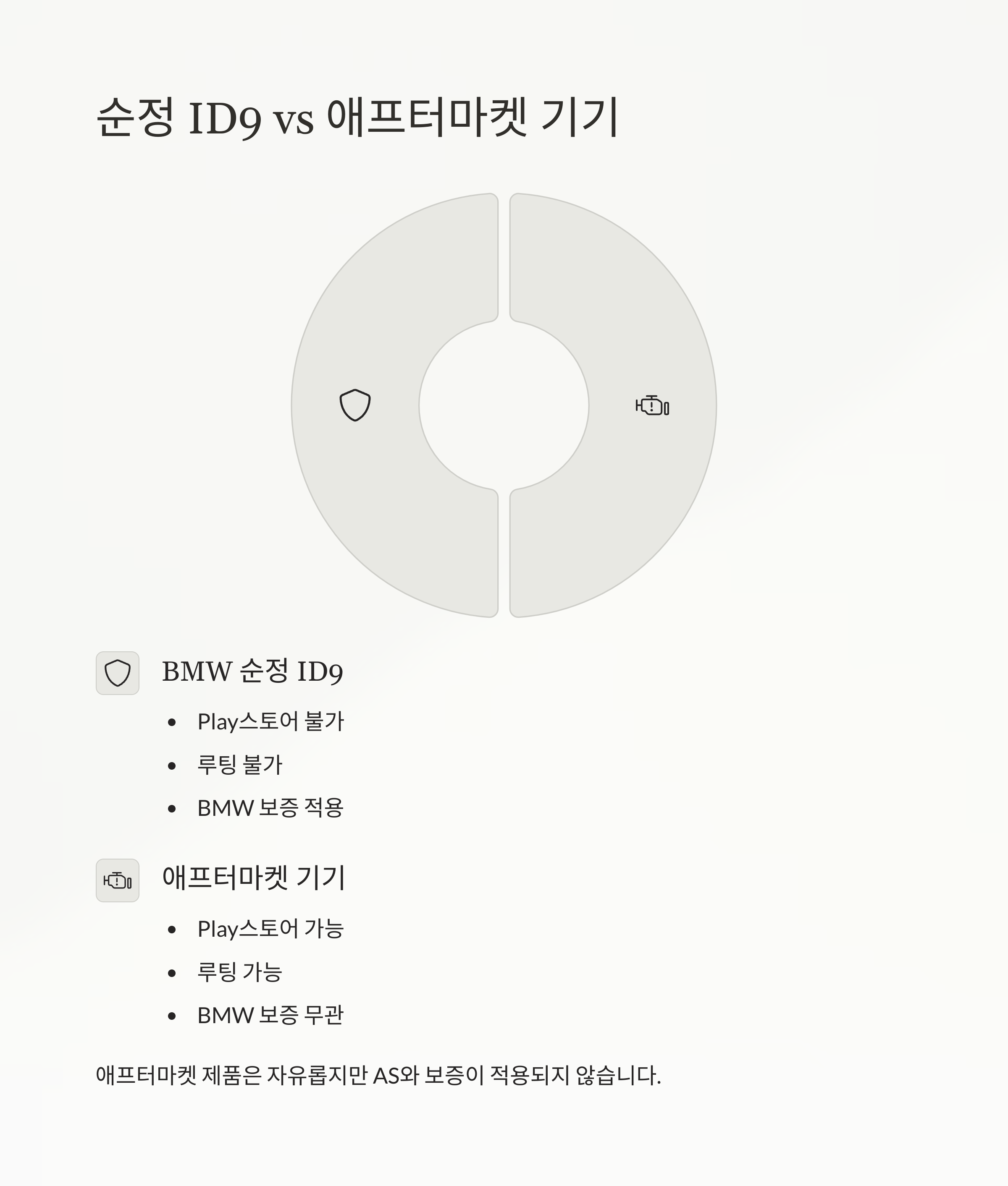 이는 BMW 순정 ID9와는 완전히 다른 제품입니다.