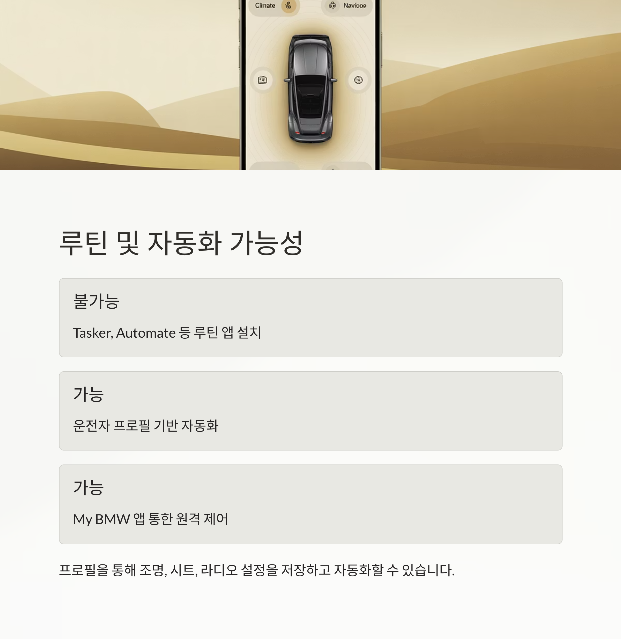 루틴·자동화는 BMW 프로필 및 공식 앱으로 제한적으로만 활용해야 합니다.