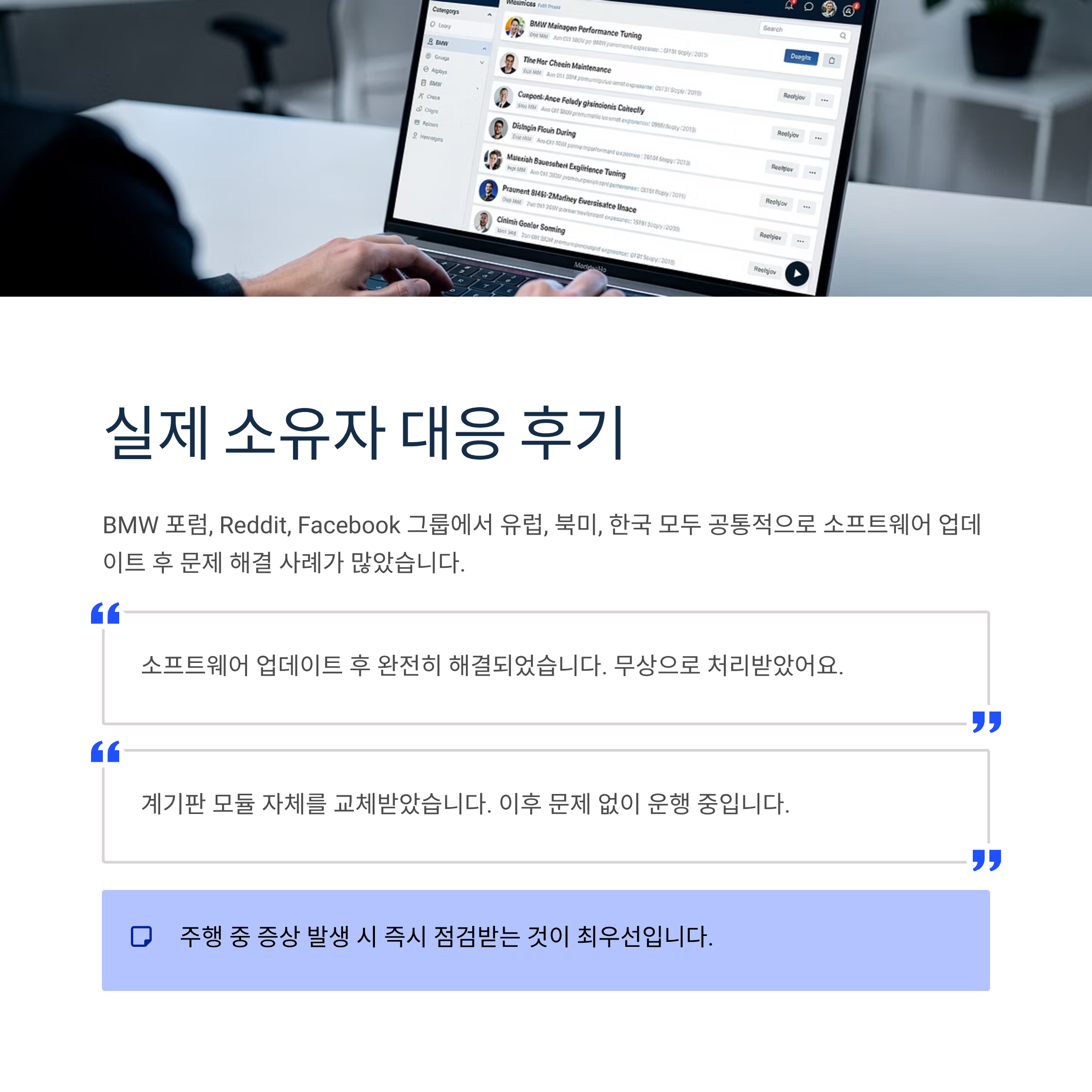 BMW 포럼과 Reddit, Facebook 그룹 등지에서는 이미 여러 차례 이슈가 공유됐습니다.