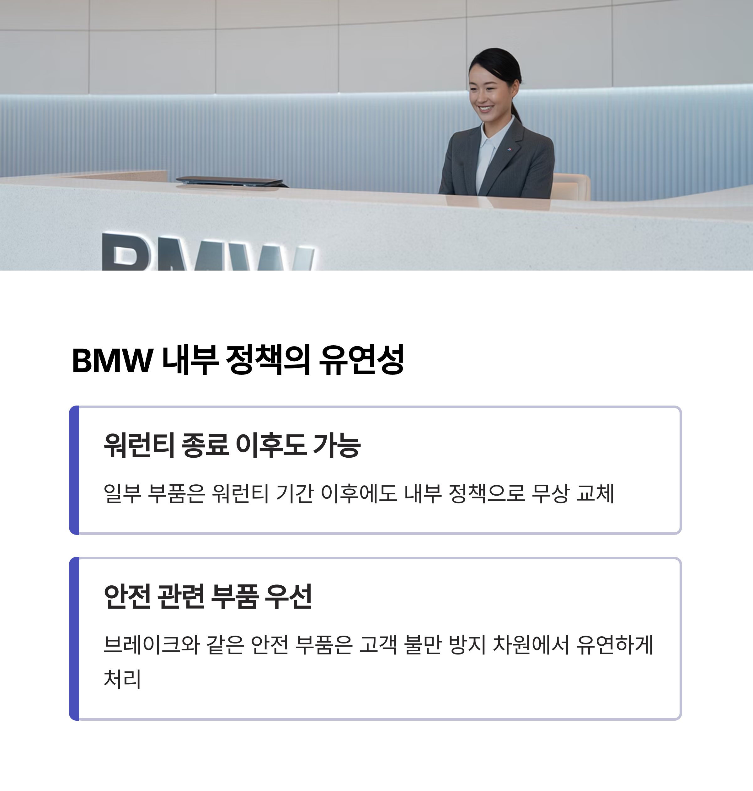 일부 차량 부품이나 소모품은 워런티 종료 이후에도 BMW 내부 정책에