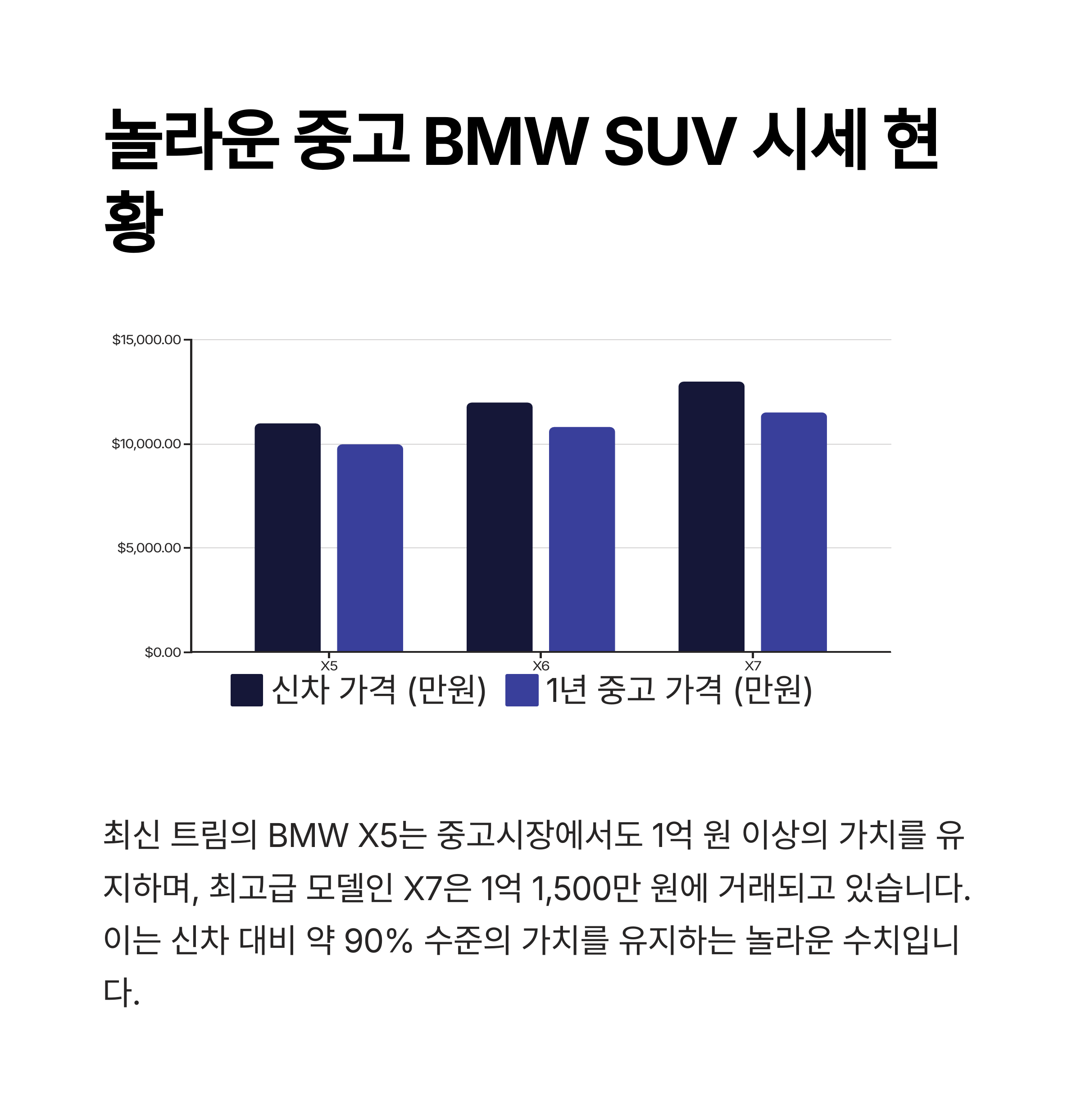 이처럼 신차 수급난이 이어지는 한, X시리즈 중고 차량의 시세는 당분간 고공행진을 이어갈 가능성이 높습니다. 그러나 그 끝은 언제 올지 모릅니다.