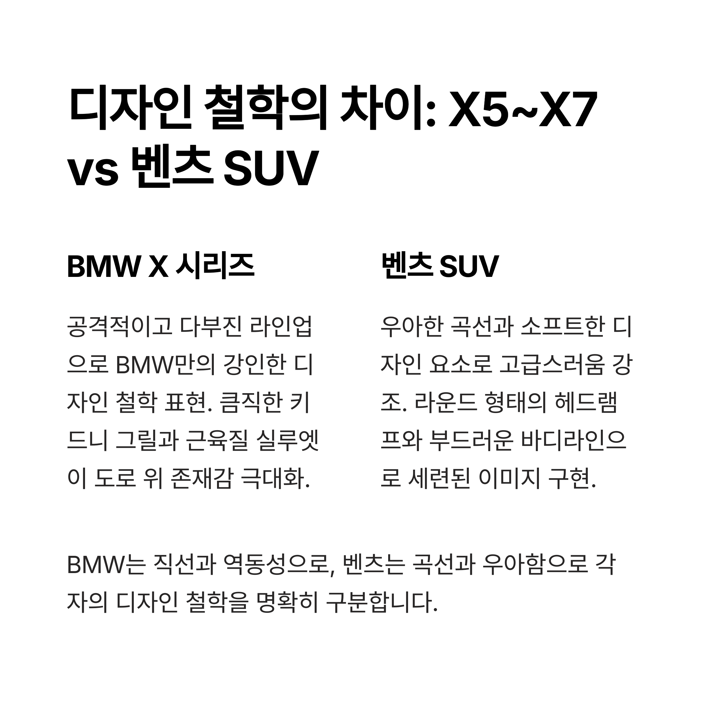 디자인 감성의 차이 - X5~X7의 외관과 벤츠 SUV의 차별점