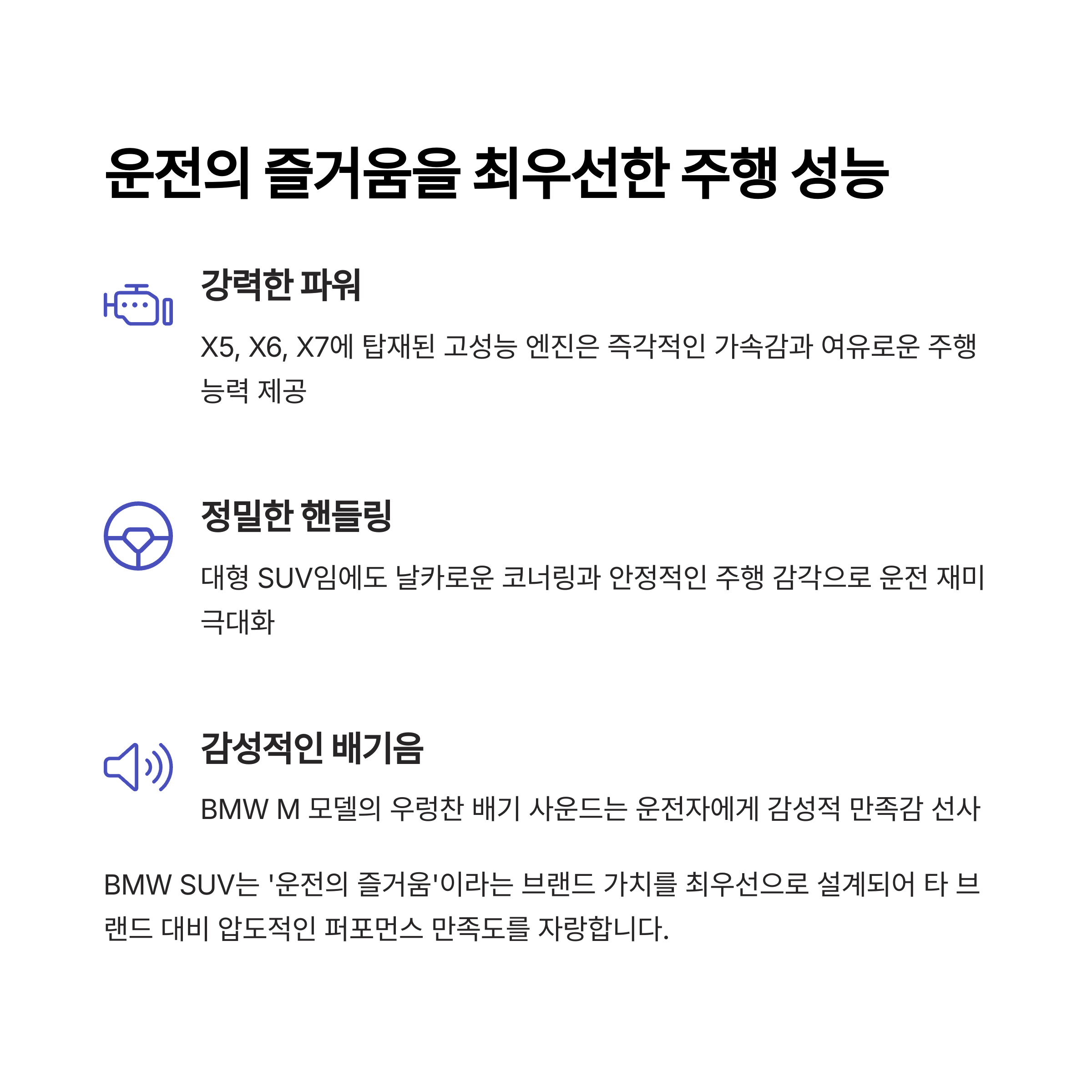 BMW는 SUV 라인업 전체에 일관된 주행 철학과 브랜드 감성을 반영하며