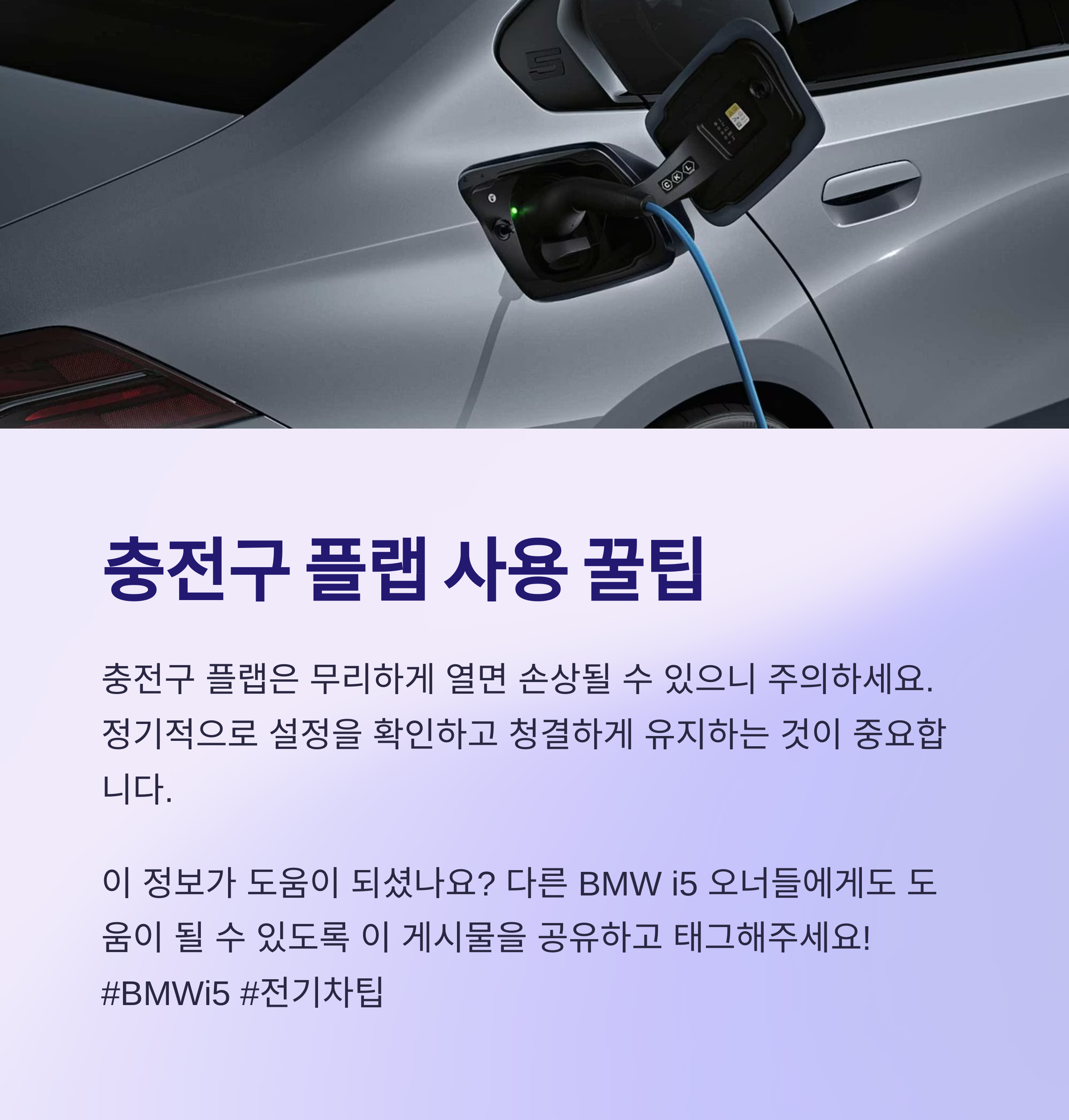 BMW i5의 충전구 플랩 개폐는 상시잠금해제 옵션과 차량 잠금 상태에 따라 다르게 동작합니다. 설정에서 잠금 상태와 플랩 개폐를 잘 확인하고, 문제가 지속되면 전문가의 도움을 받는 것이 중요합니다.