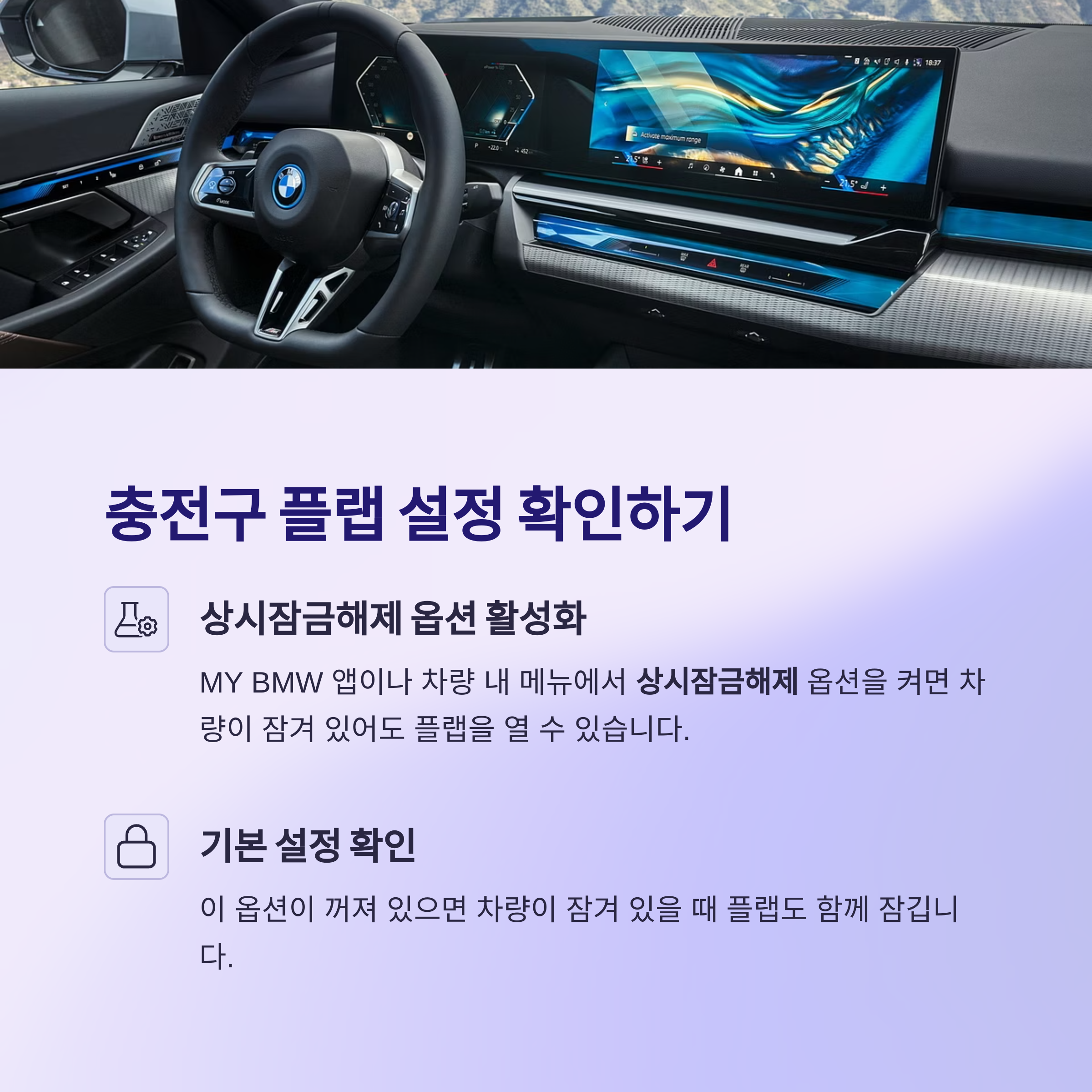 BMW i5 충전구 플랩 문제 해결을 위한 설정 방법