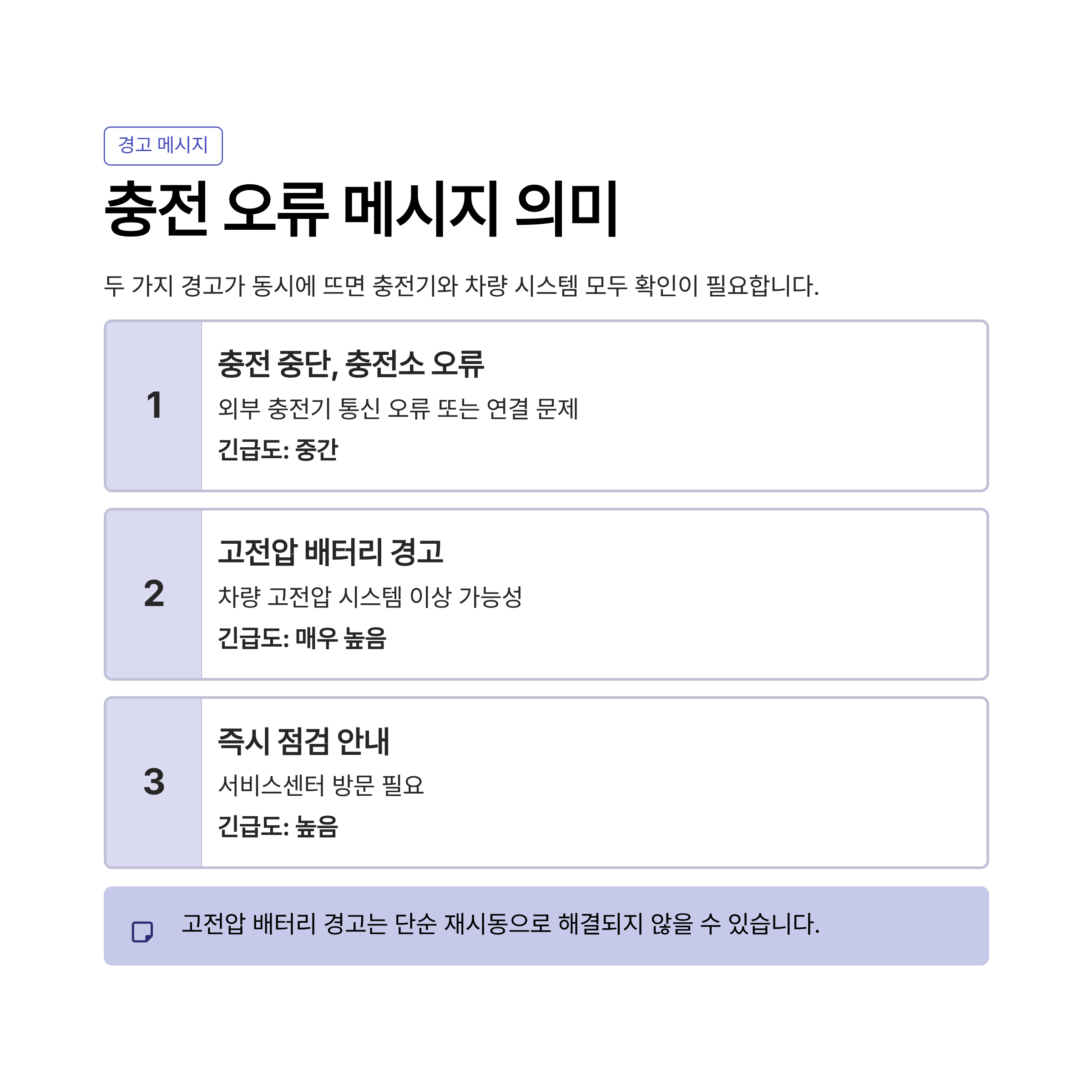 “고전압 배터리, 즉시 점검” 메시지가 동시에 뜨면
