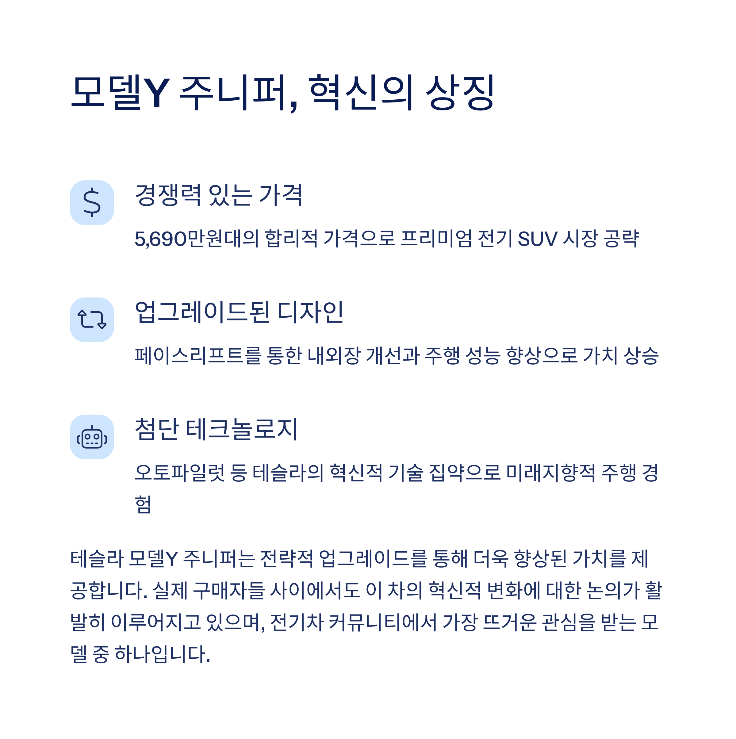 둘째, 신기술과 변화에 민감하다면 테슬라 모델Y 주니퍼가 맞습니다.