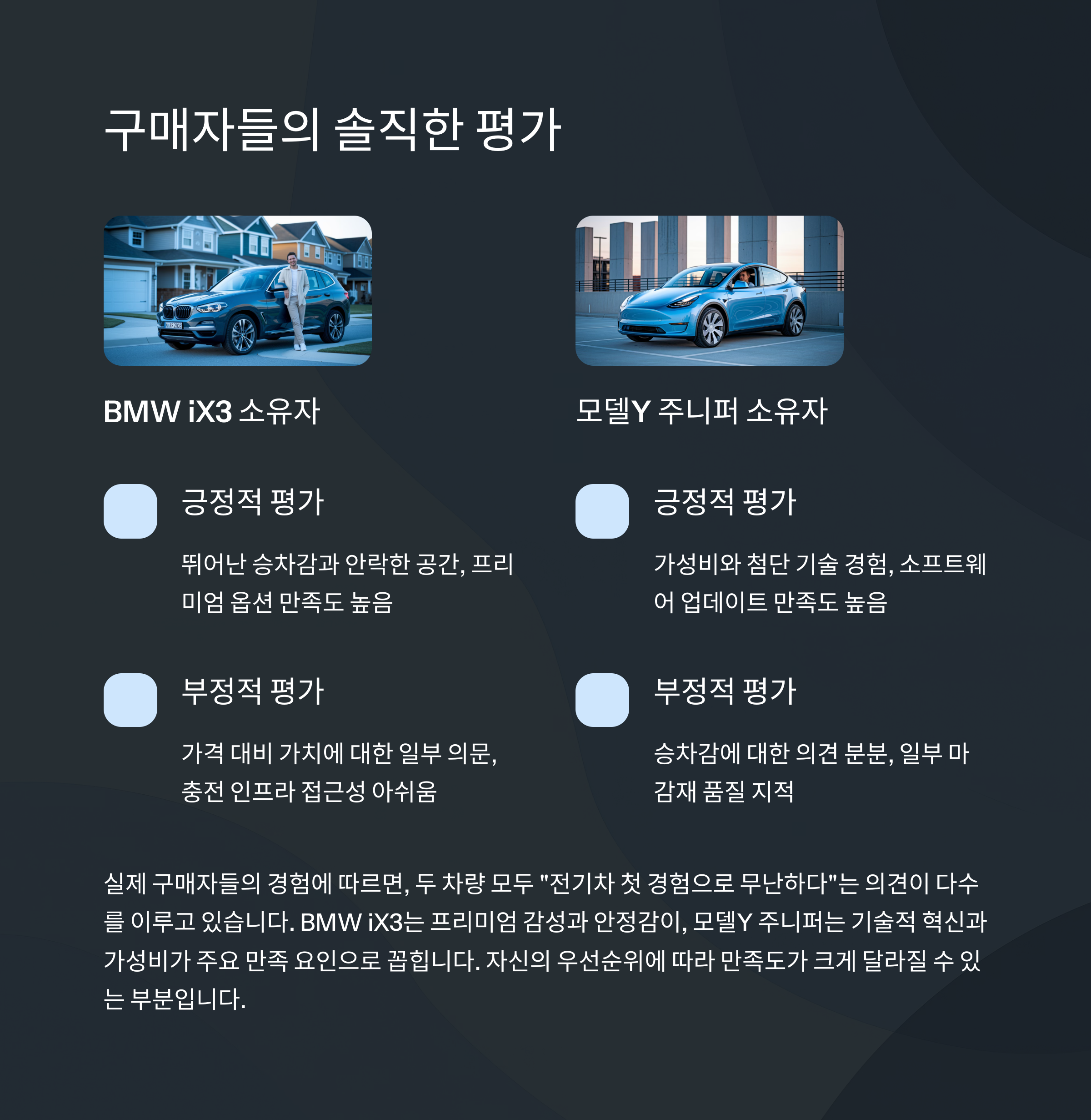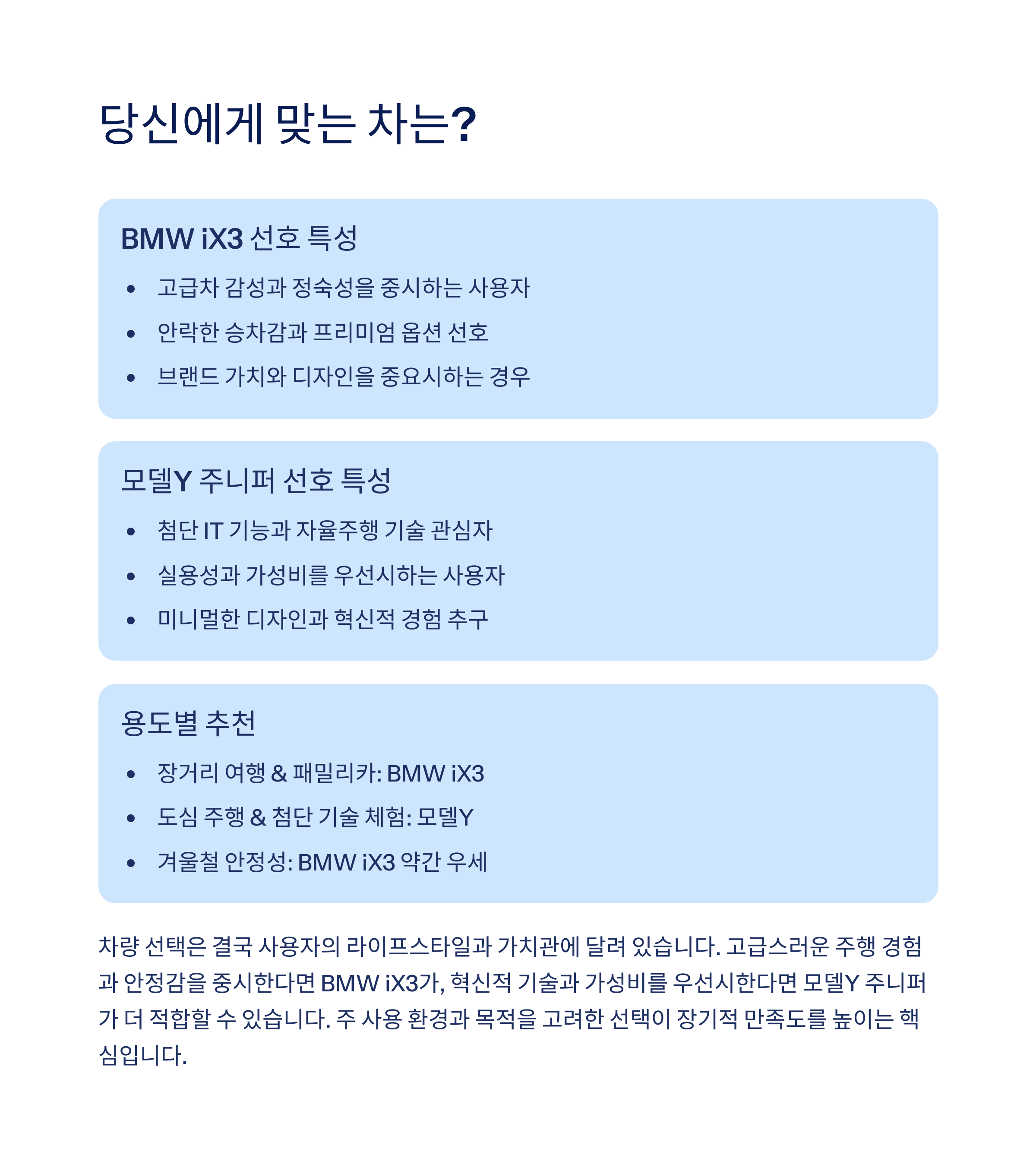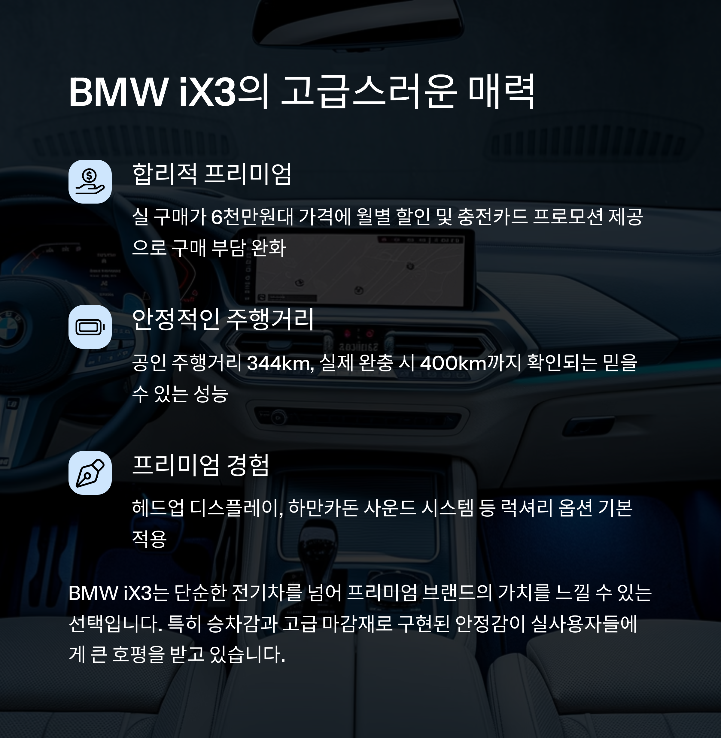 특히 "독일차 특유의 묵직한 안정감과 정숙성"은 iX3의 핵심 매력입니다.