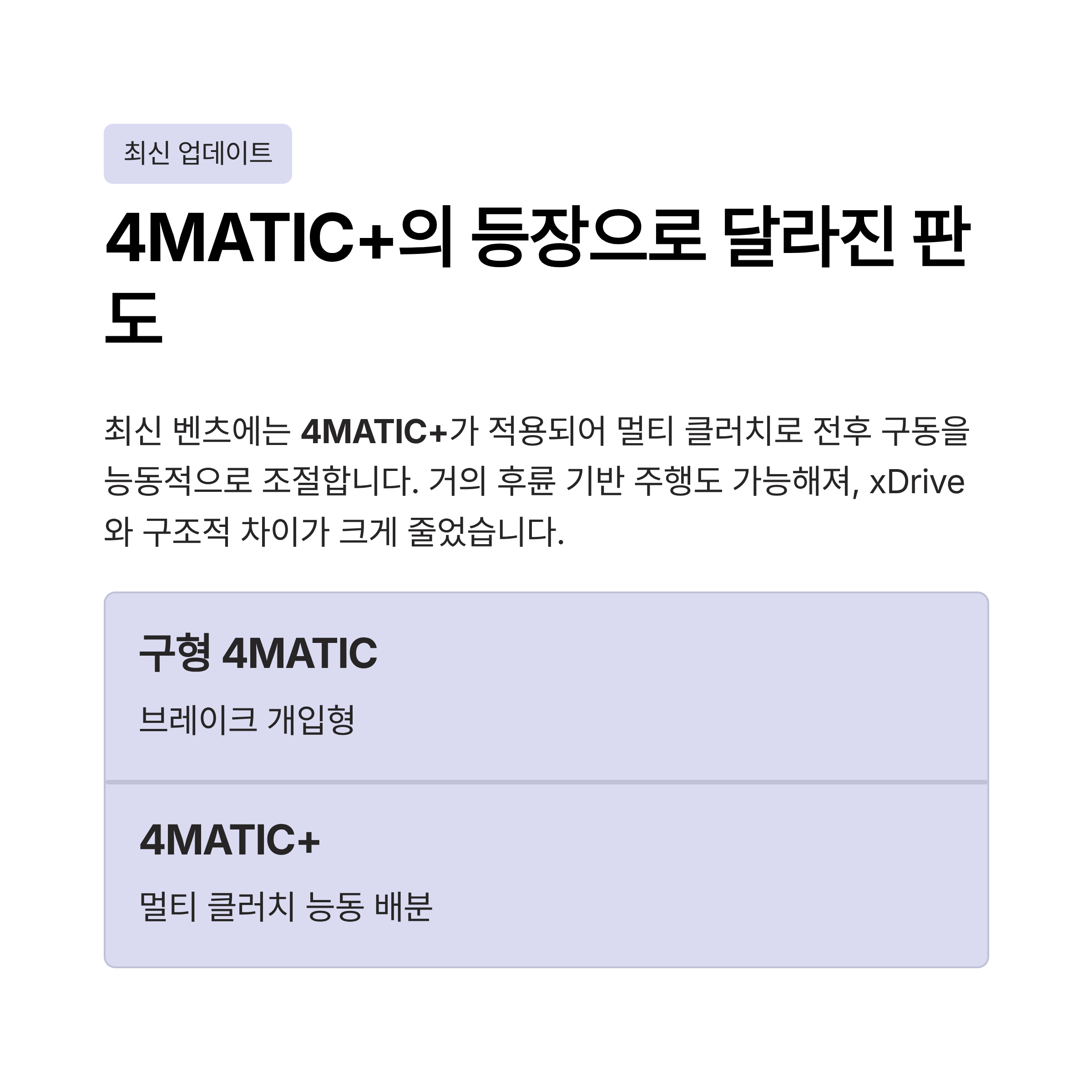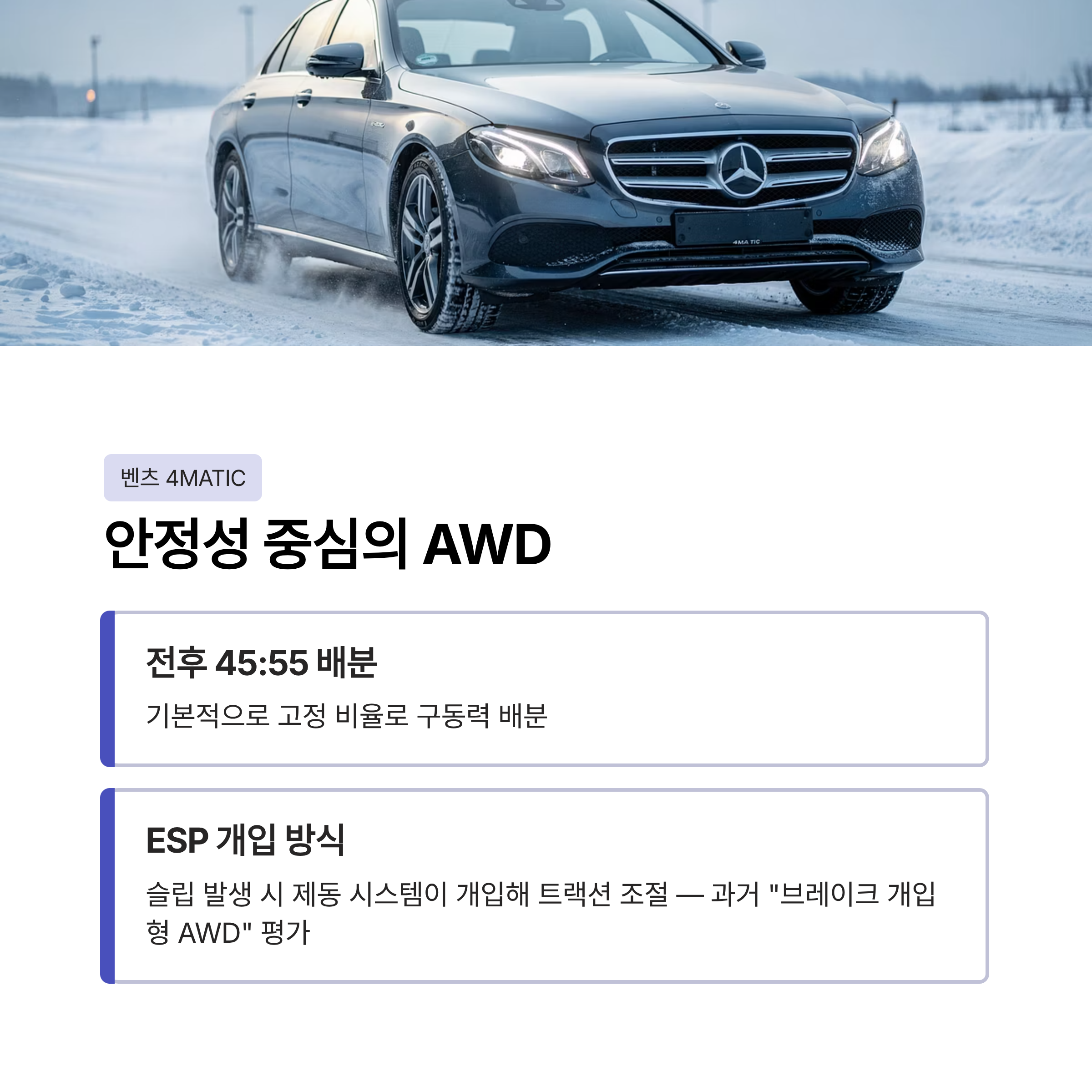 벤츠 4MATIC은 ‘안정성을 우선하는 AWD’입니다.