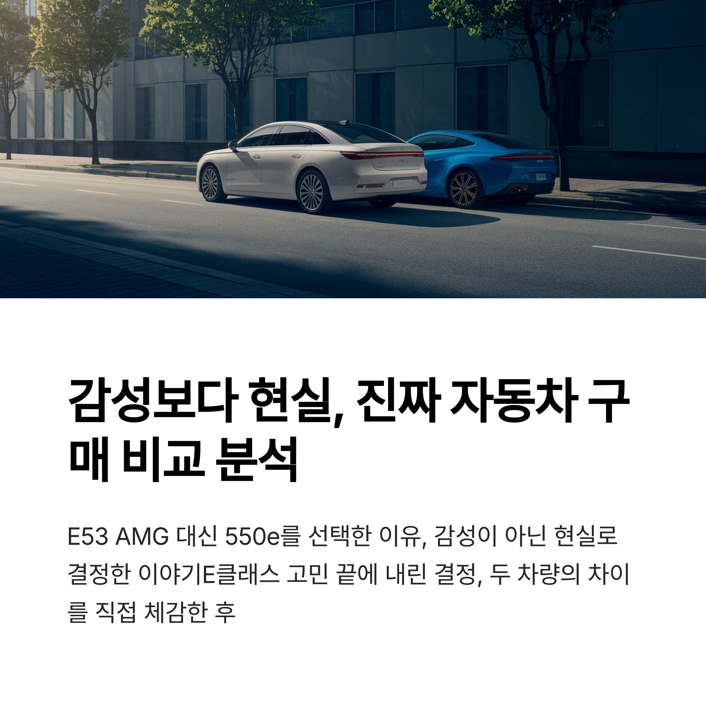 E53 AMG는 퍼포먼스를 위한 세부 기능이 많았고, 550e는 쾌적한 실내 중심의 옵션 구성이었습니다.