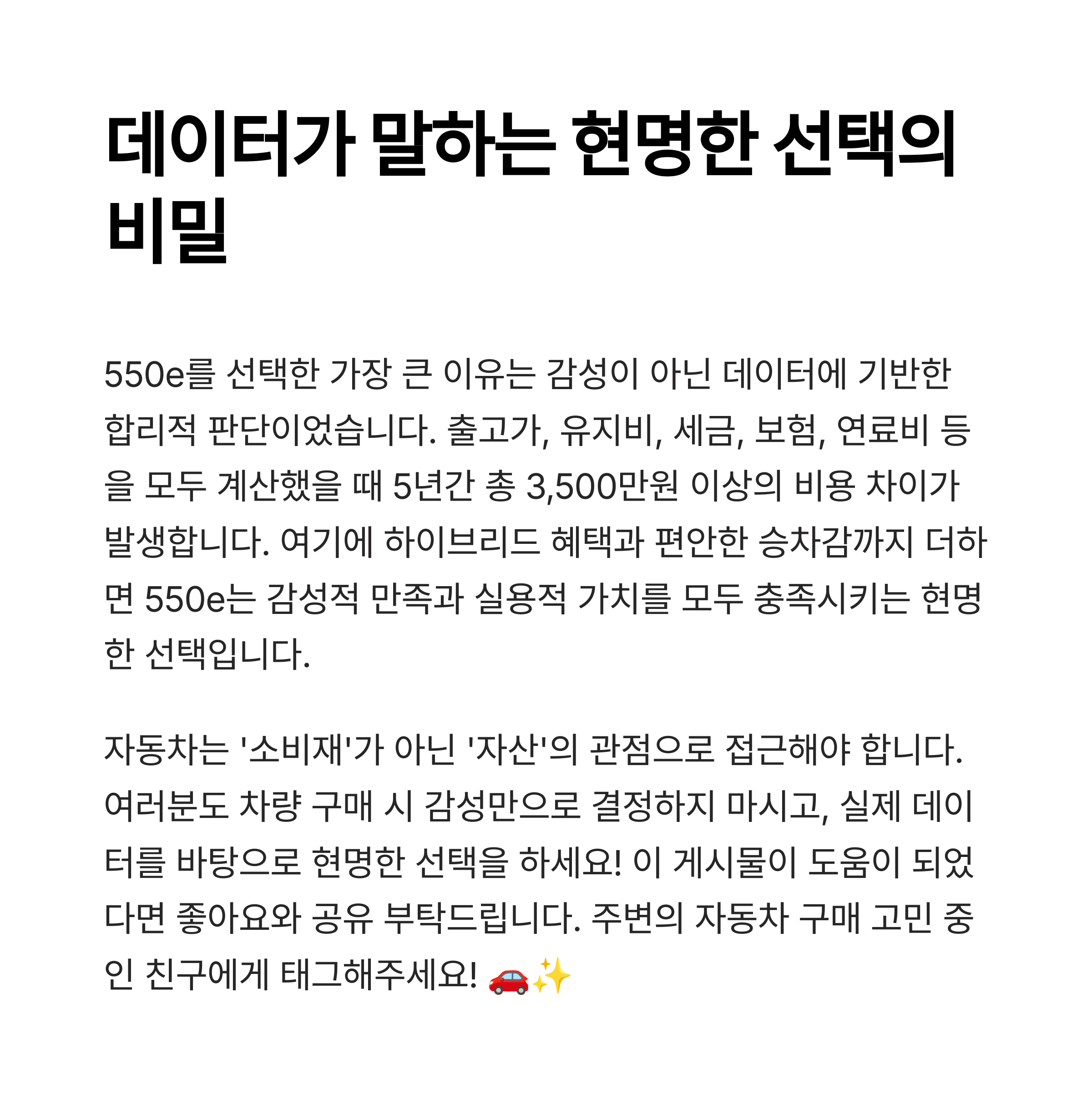 매일의 만족감이 있는 선택, 그게 바로 550e였습니다 😊