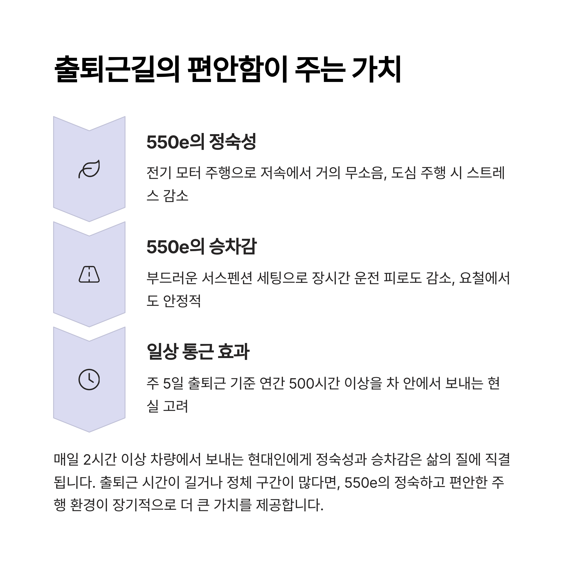 출퇴근 시간, 스트레스 없는 정숙한 주행 환경은 생각보다 삶의 질을 높여줬습니다.
