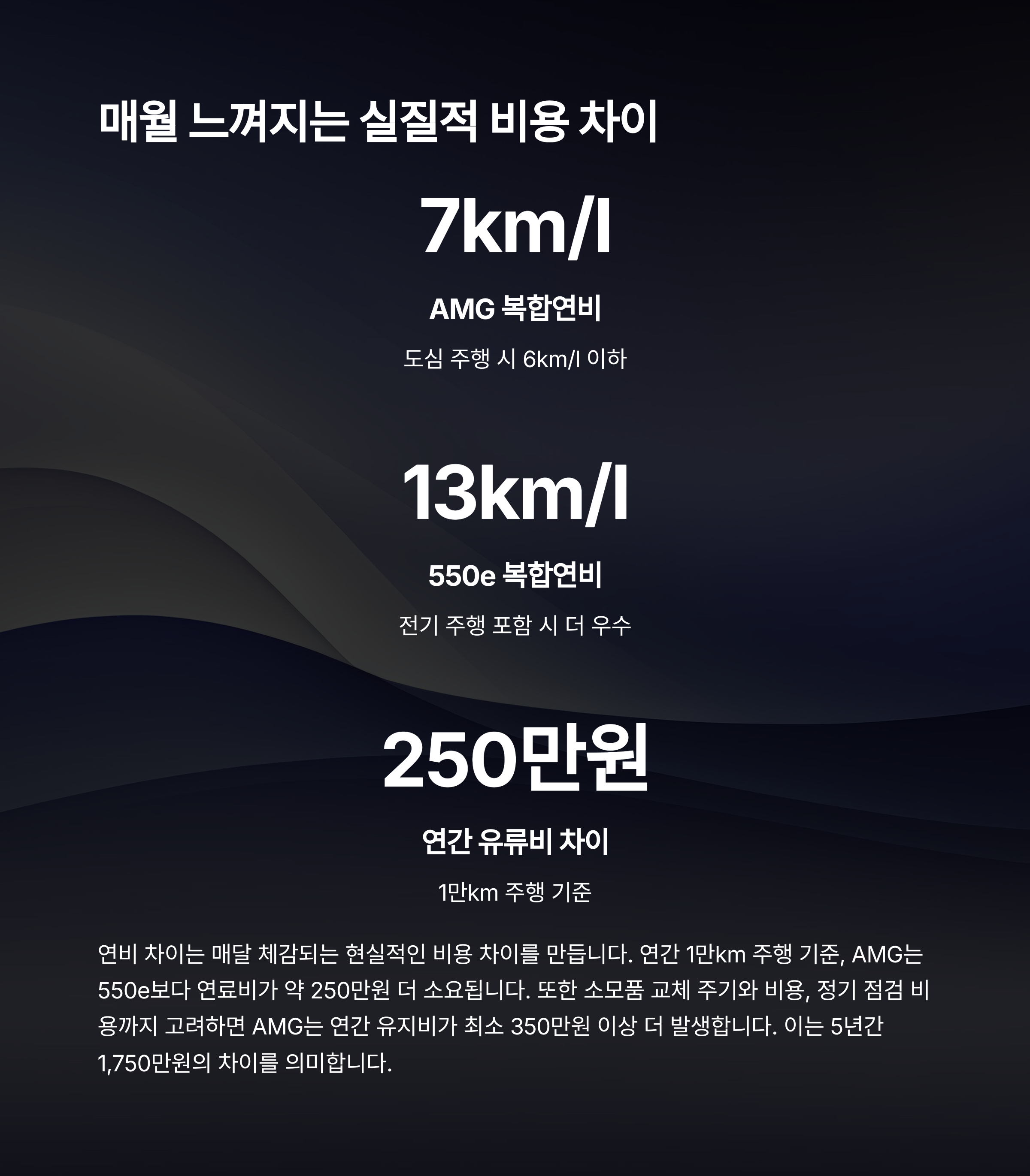 또한 550e는 브레이크 패드 교체 주기나 엔진오일 관리 면에서도 훨씬 유지비가 낮았습니다.