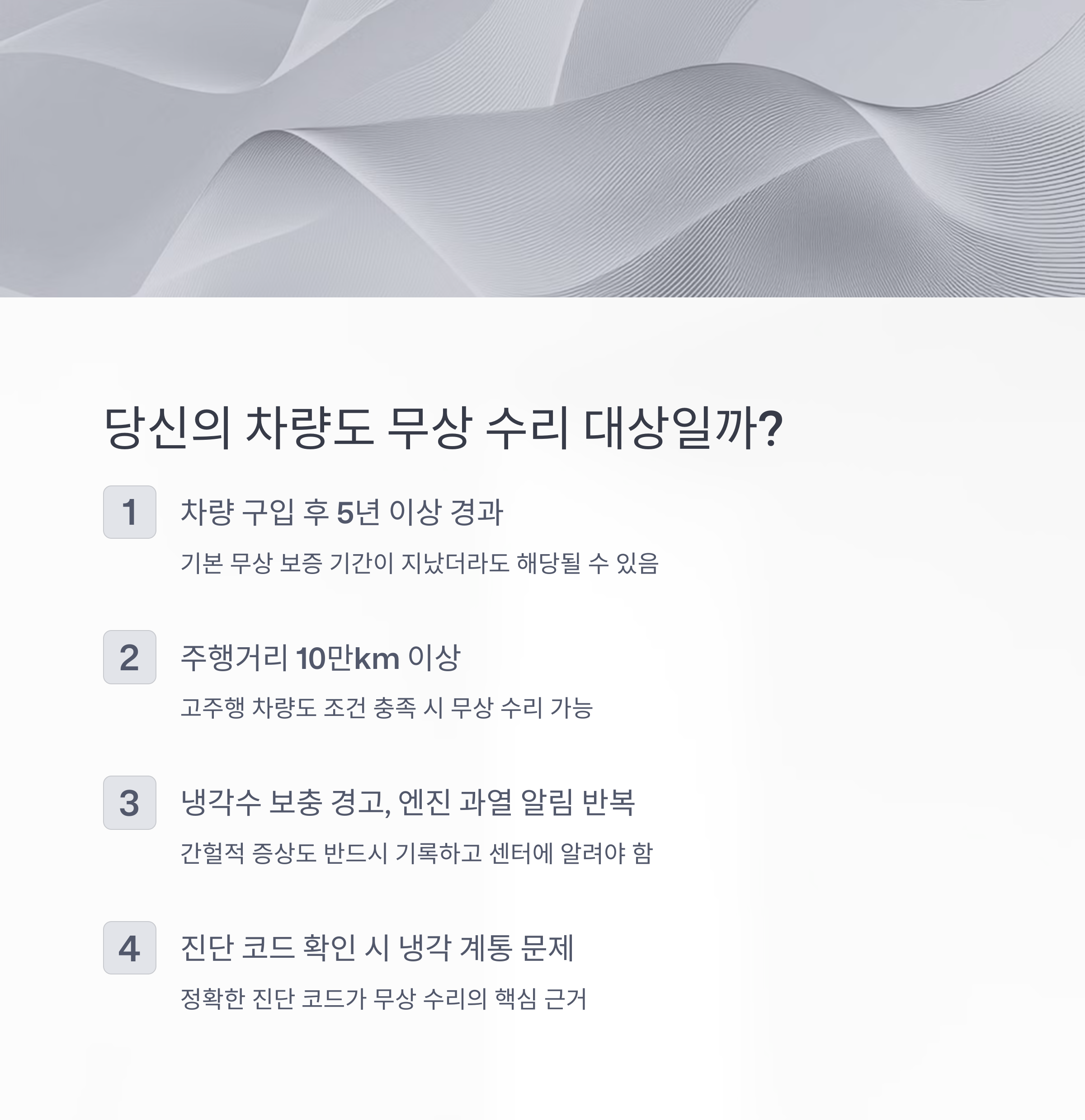 냉각수 온도 상승이나 엔진 과열 경고가 반복된다면, 절대 방치하지 마시고 반드시 진단을 받아보시기 바랍니다.