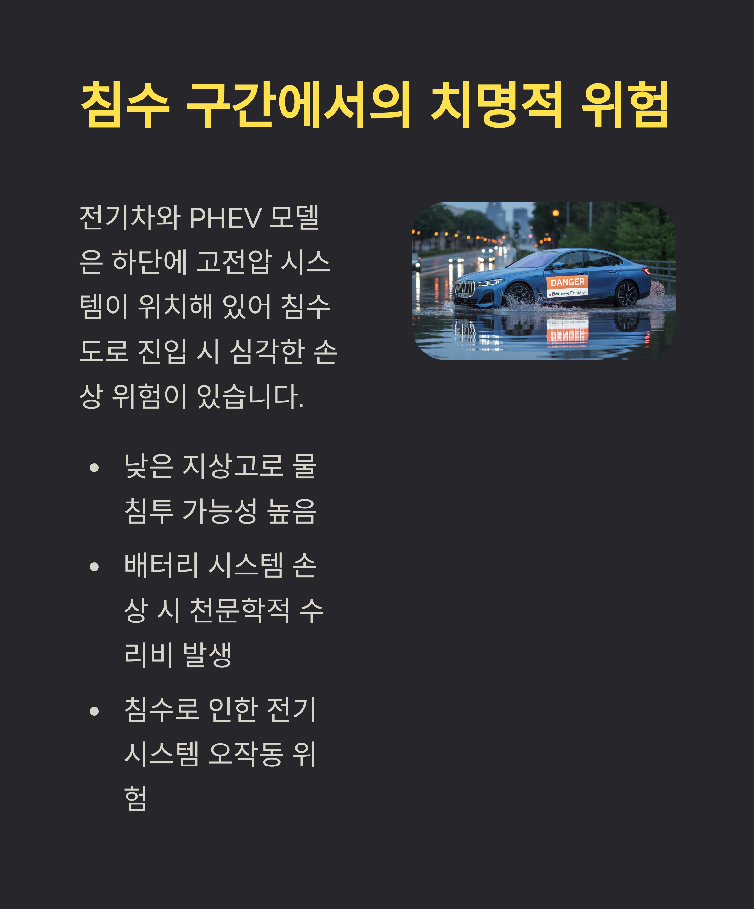 전기차 및 PHEV 모델은 물에 민감한 고전압 시스템을 하단에 갖고 있어