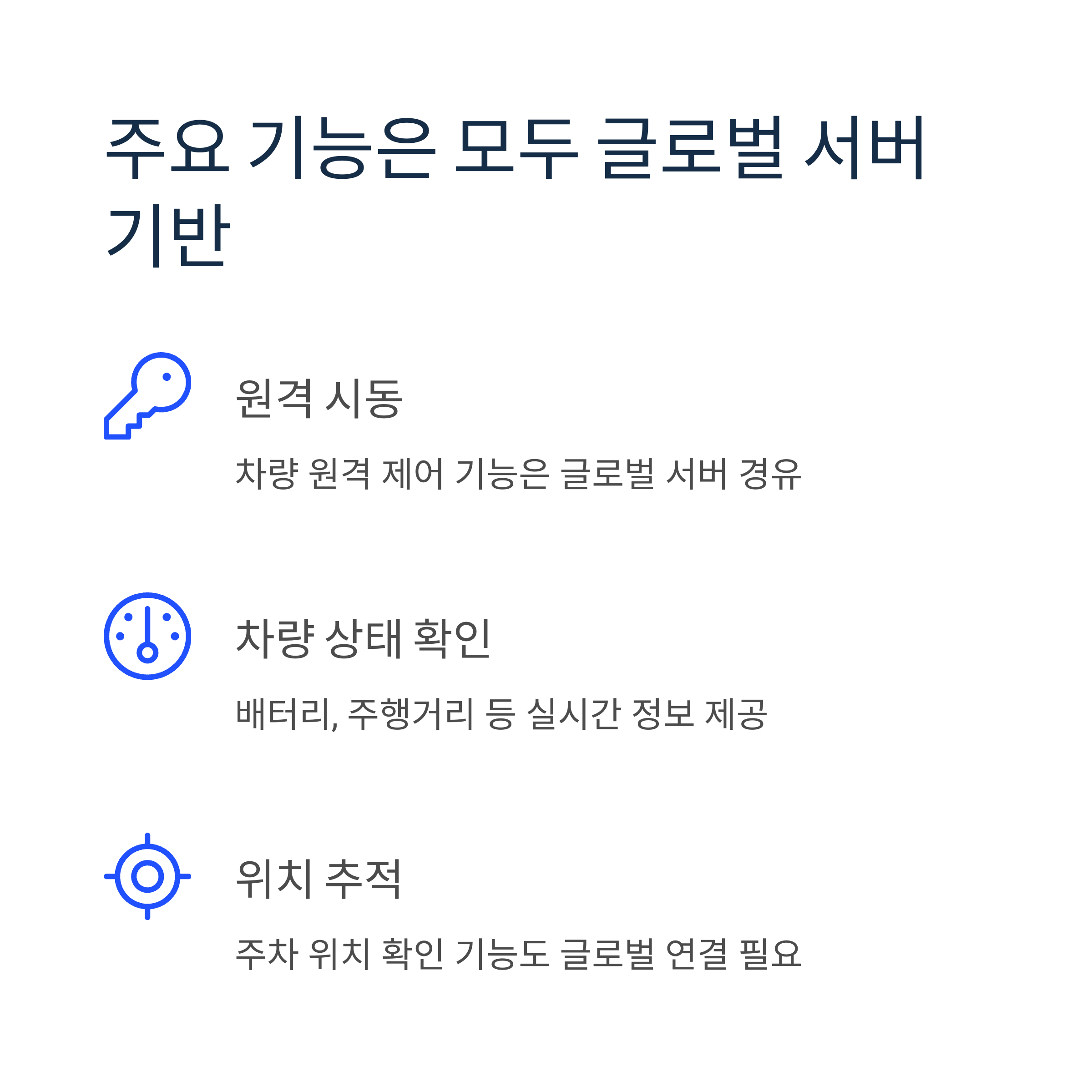 원격 시동, 차량 상태 확인, 위치 확인 등 주요 기능은 전부 글로벌 서버를