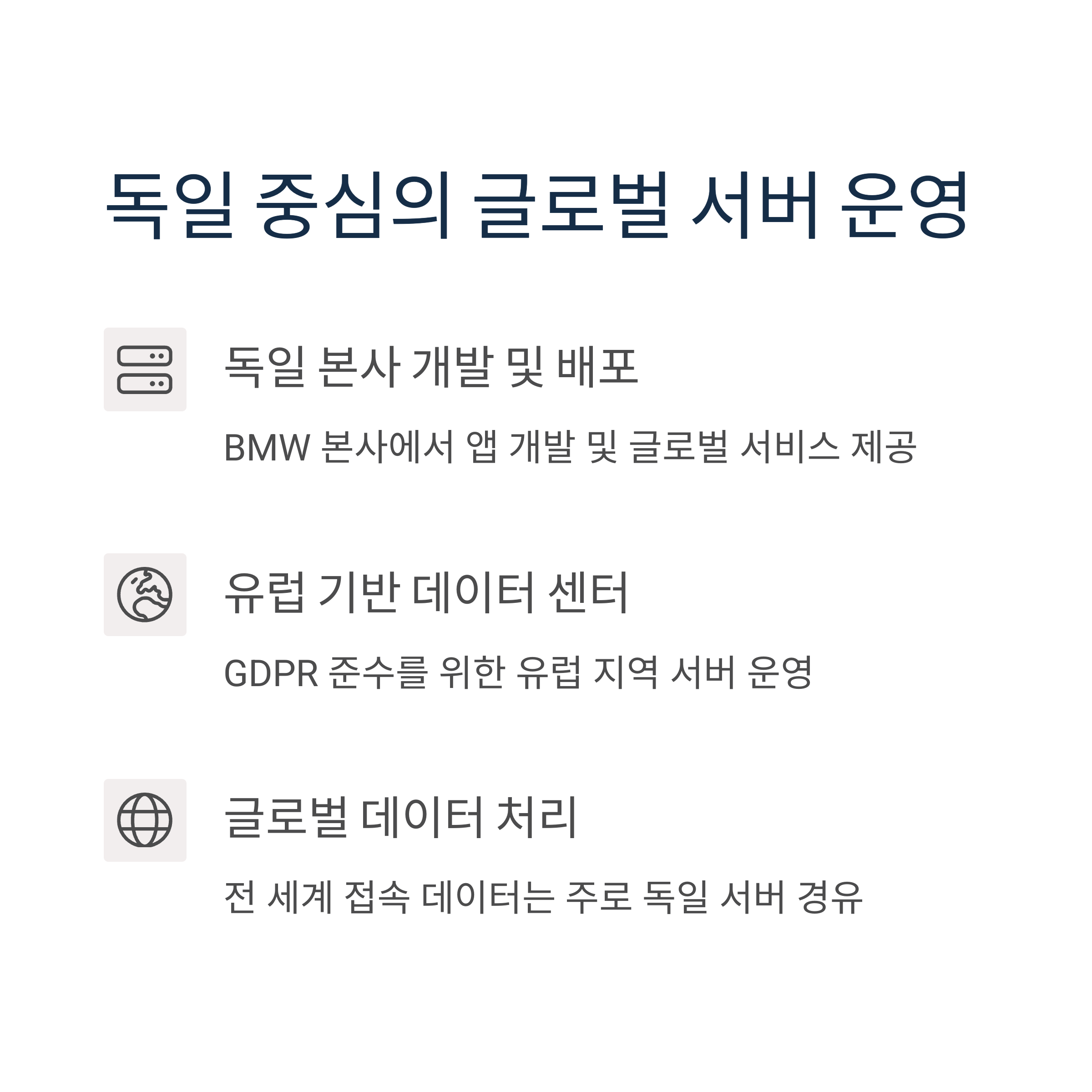 BMW는 다양한 국가에 분산 서버를 운영하고 있지만, 핵심 서비스와
