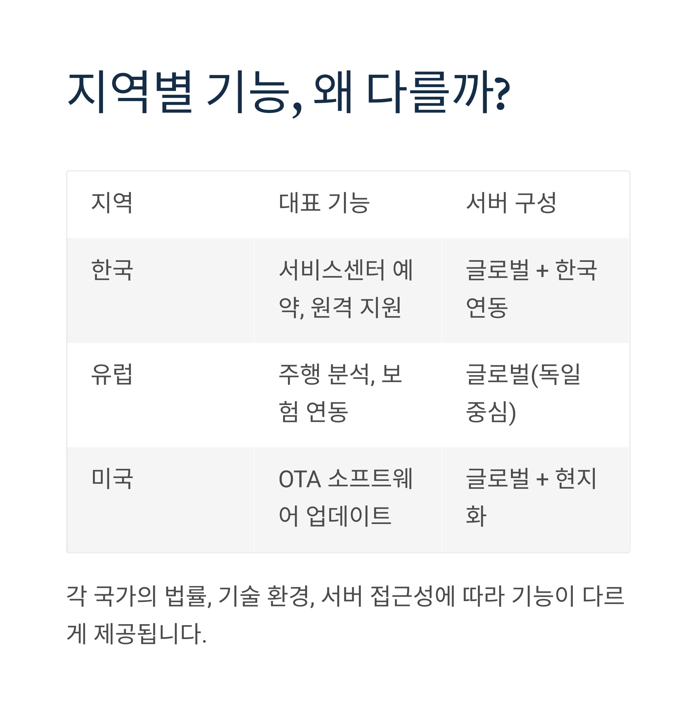 | 한국 | 서비스센터 예약, 원격 지원 | 글로벌 + 한국 연동 |